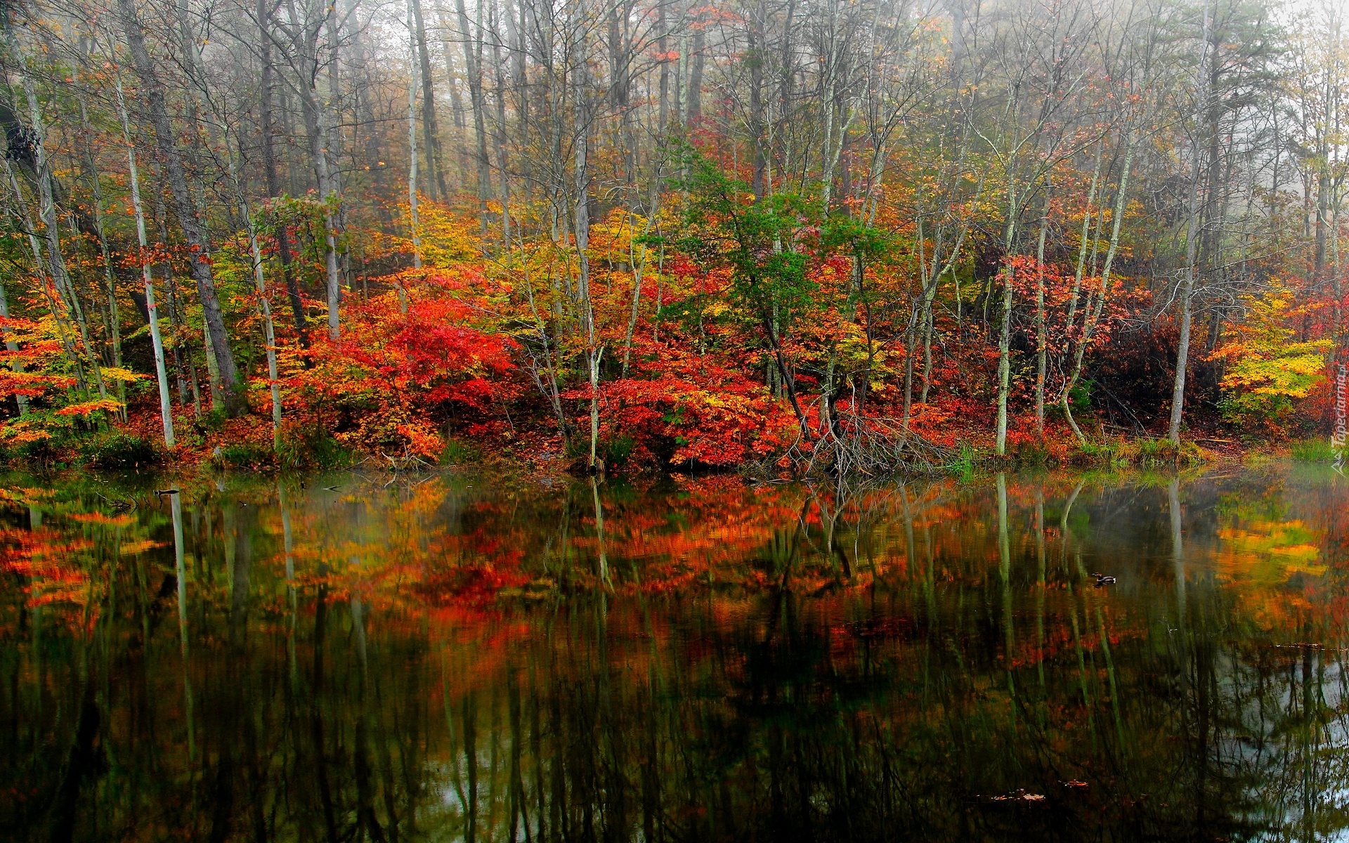 Edytor tapety: Jesień, Drzewa, Jezioro