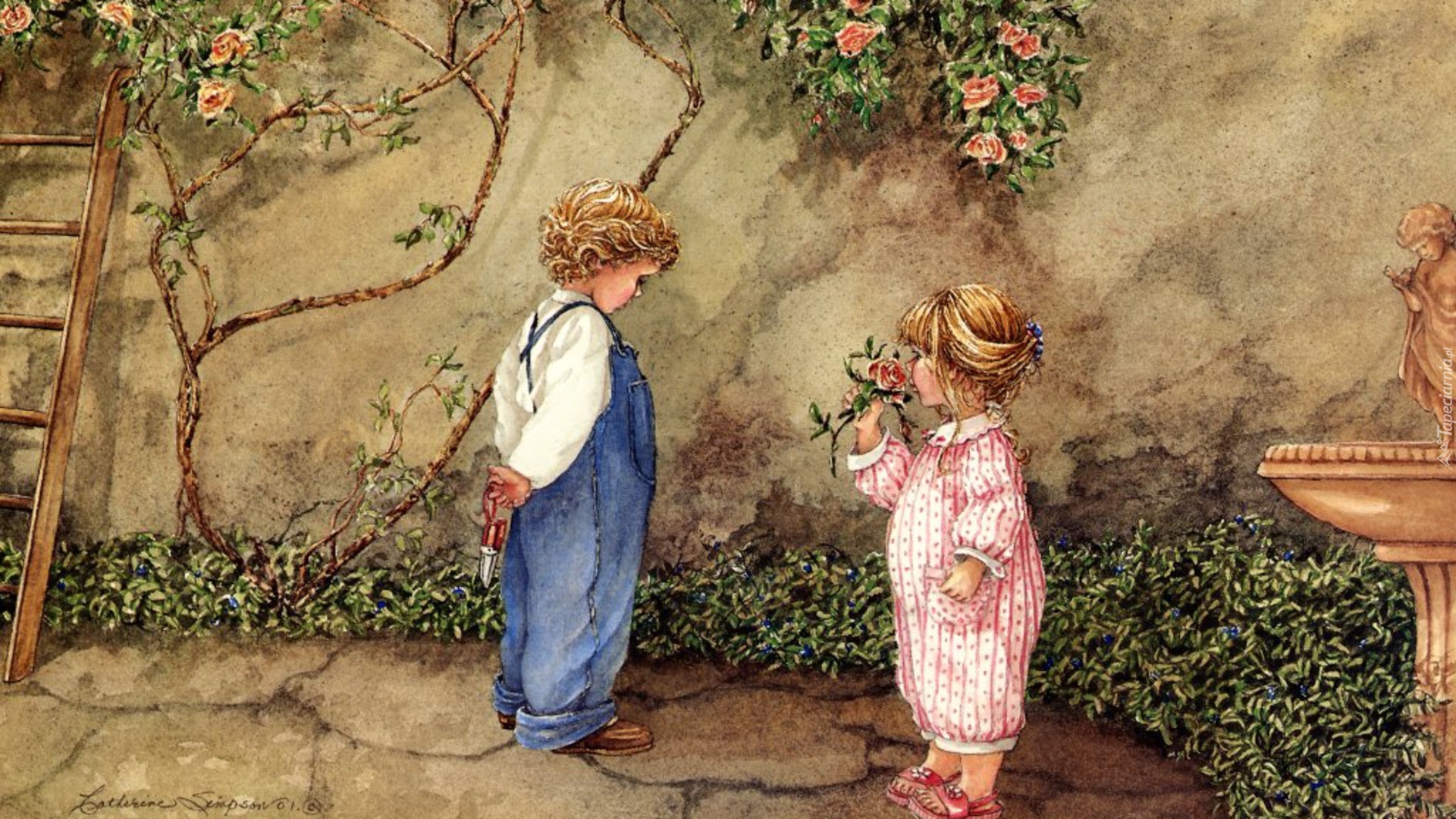 Edytor tapety: Dziewczynka, Chłopiec, Kwiaty, Catherine Simpson