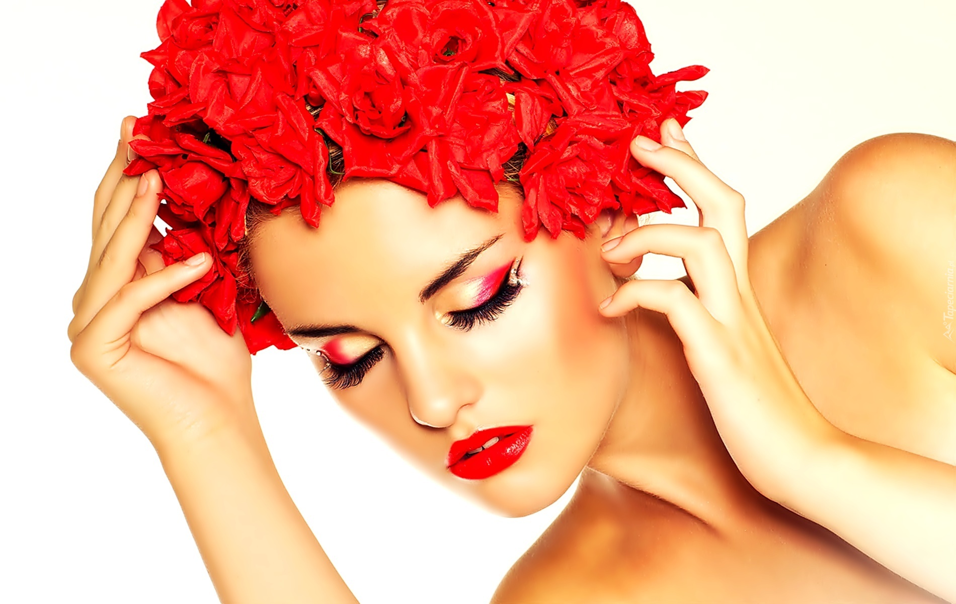 Edytor tapety: Kobieta, Twarz, Kwiaty, We, Włosach