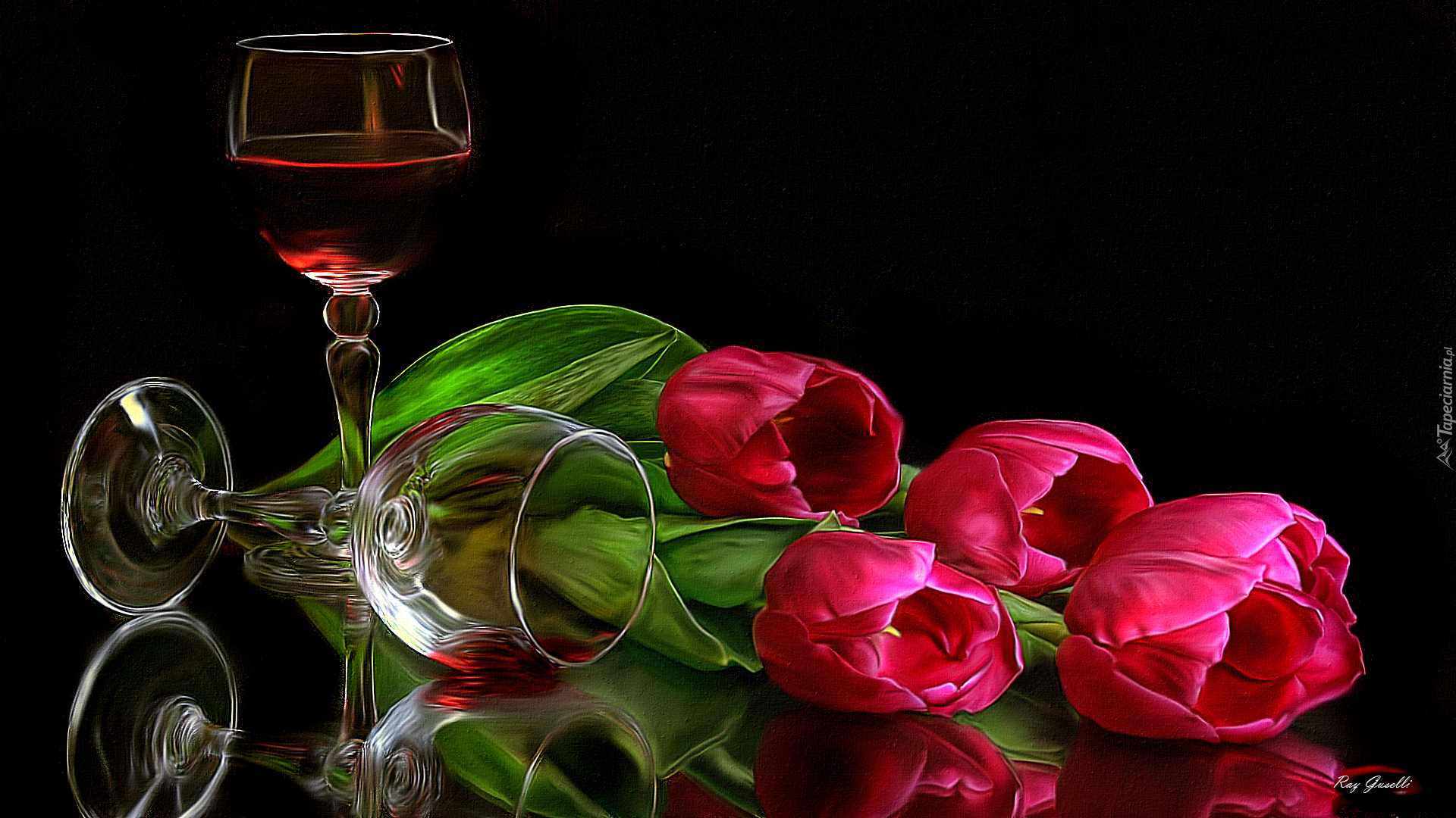 Edytor tapety: Tulipany, Wino, Kieliszki
