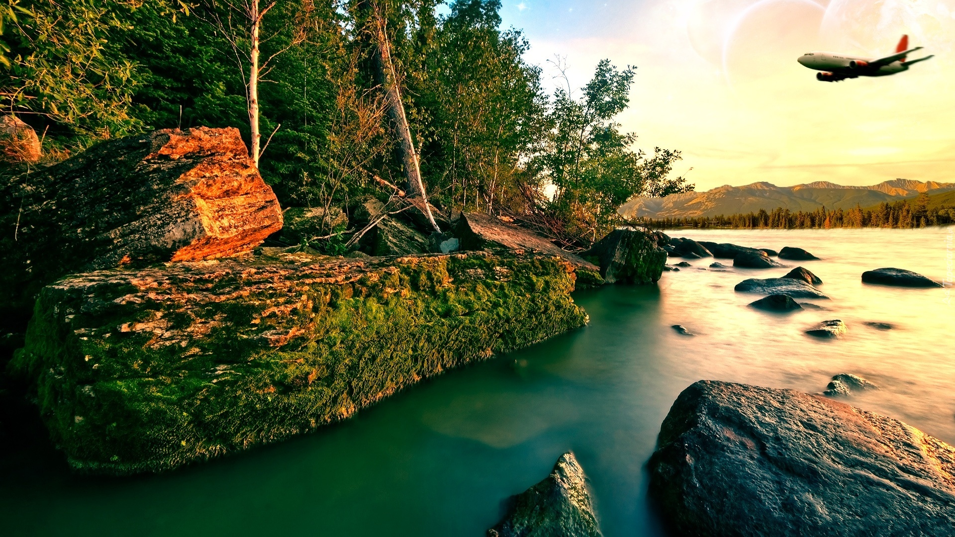 Edytor tapety: Las, Rzeka, Samolot, Krajobraz