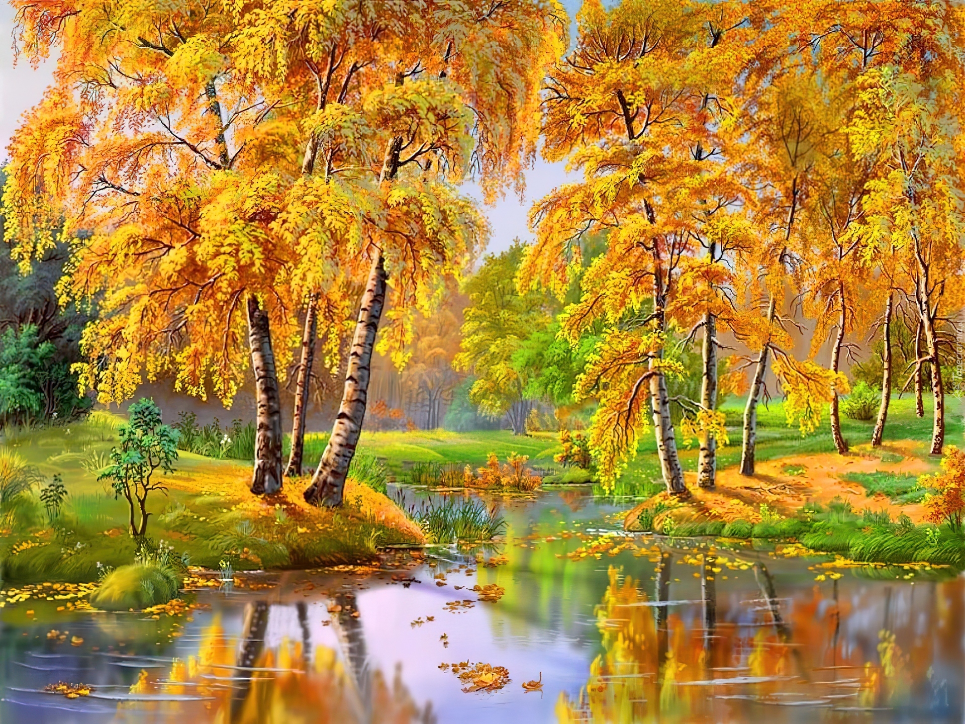 Edytor tapety: Jesień, Rzeka, Drzewa