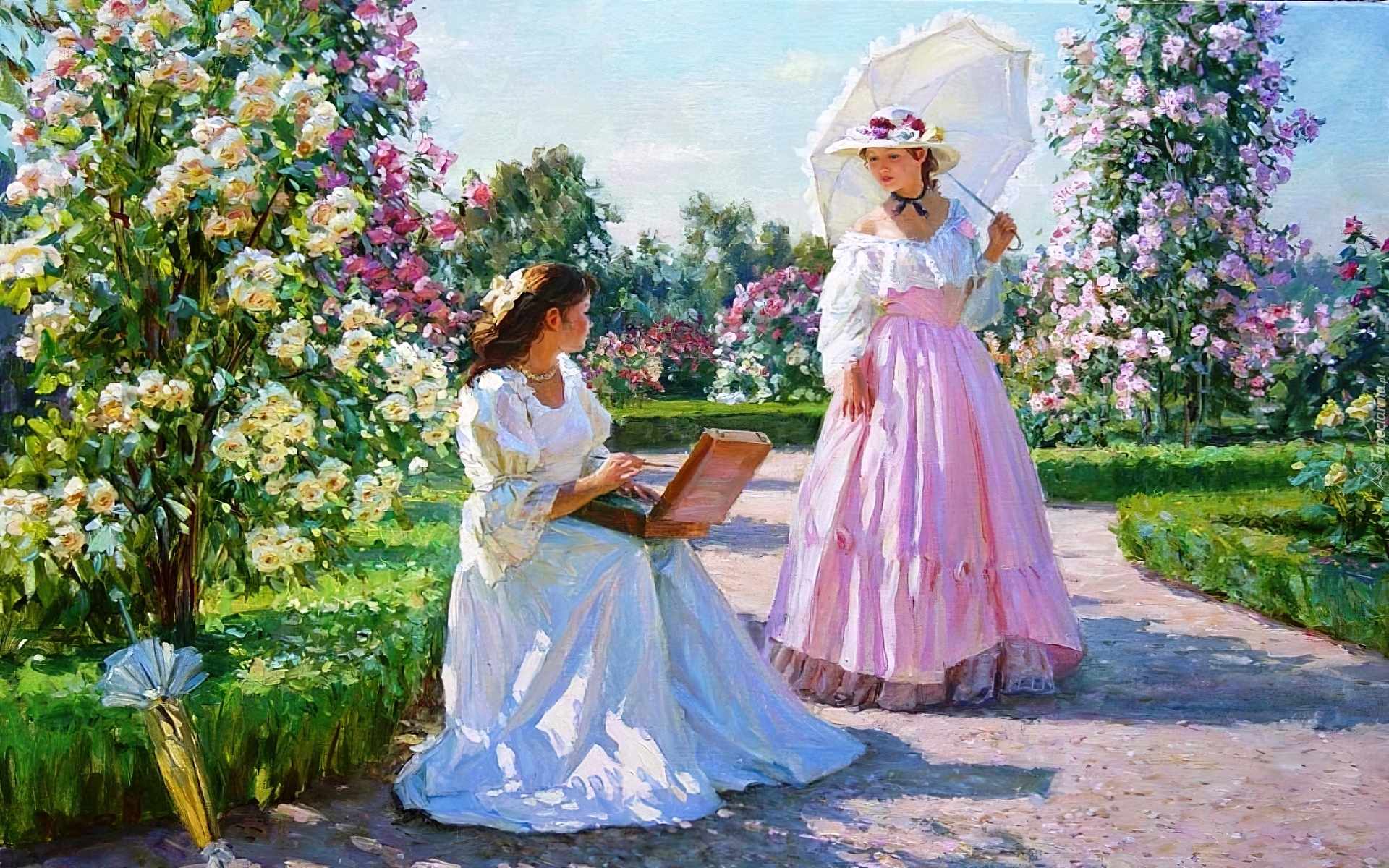 Edytor tapety: Ogród, Kwiaty, Kobiety