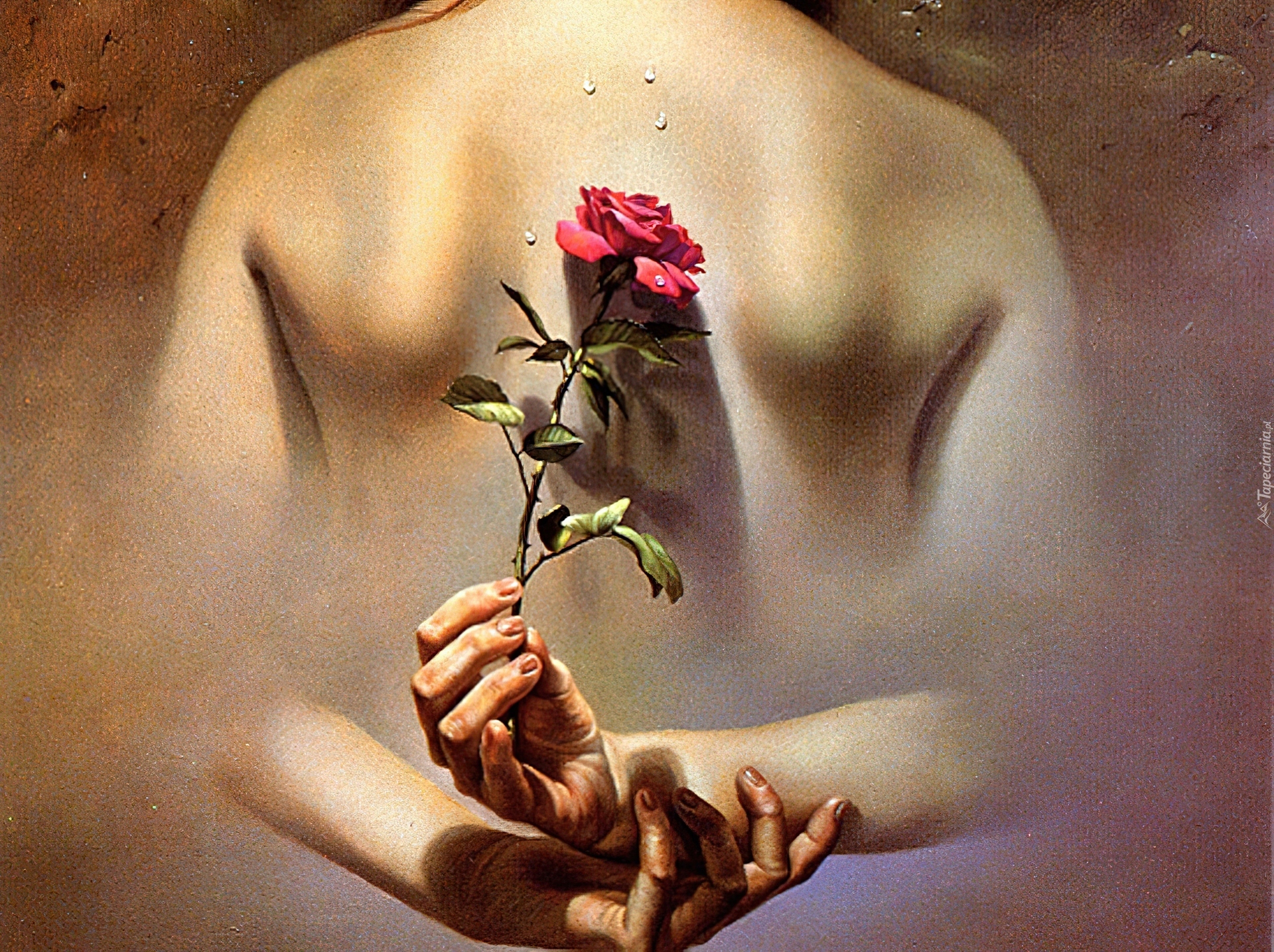 Edytor tapety: Plecy, Róża, Dłonie