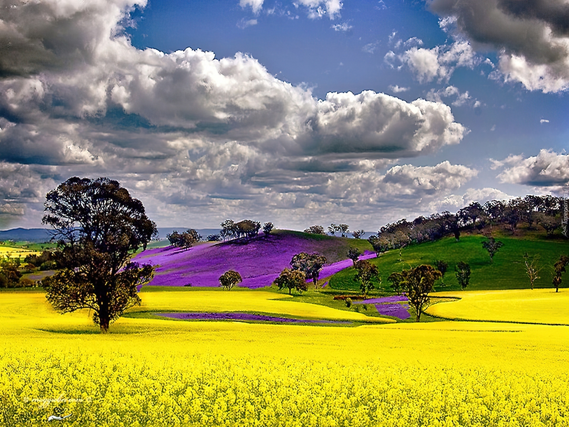 Edytor tapety: Wiosna, Pola, Lawenda wąskolistna, Rzepak