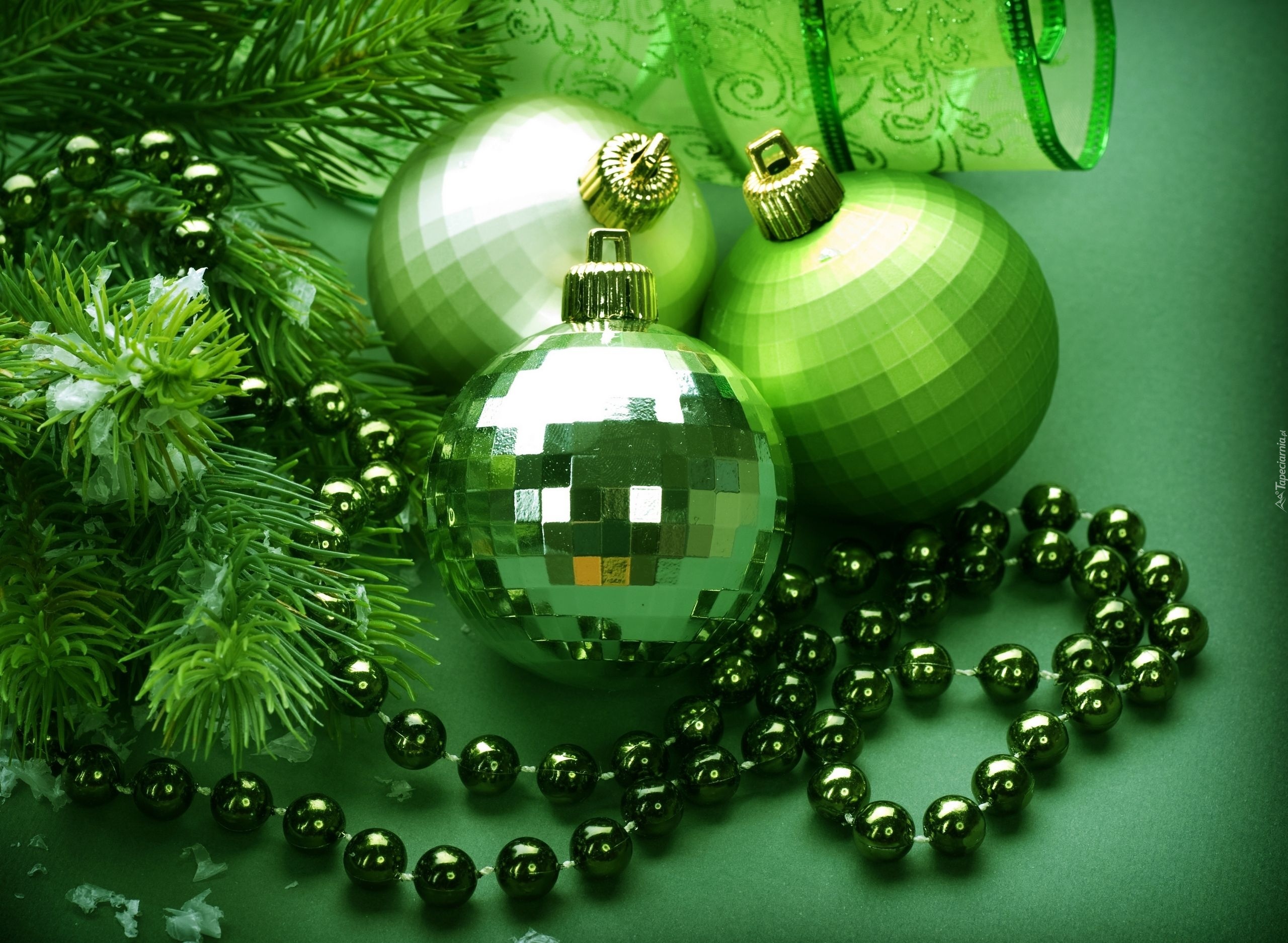 Edytor tapety: Zielone, Bombki, Ozdoby