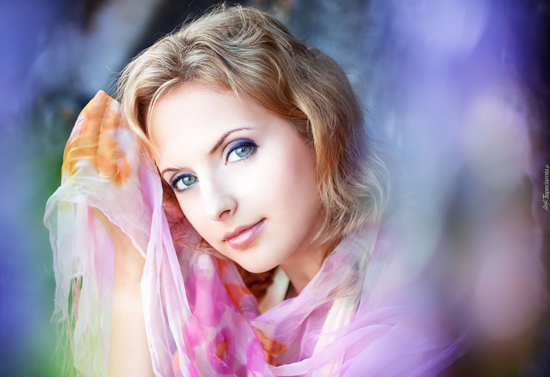 Edytor tapety: Kobieta, Blondynka, Niebieskie, Oczy
