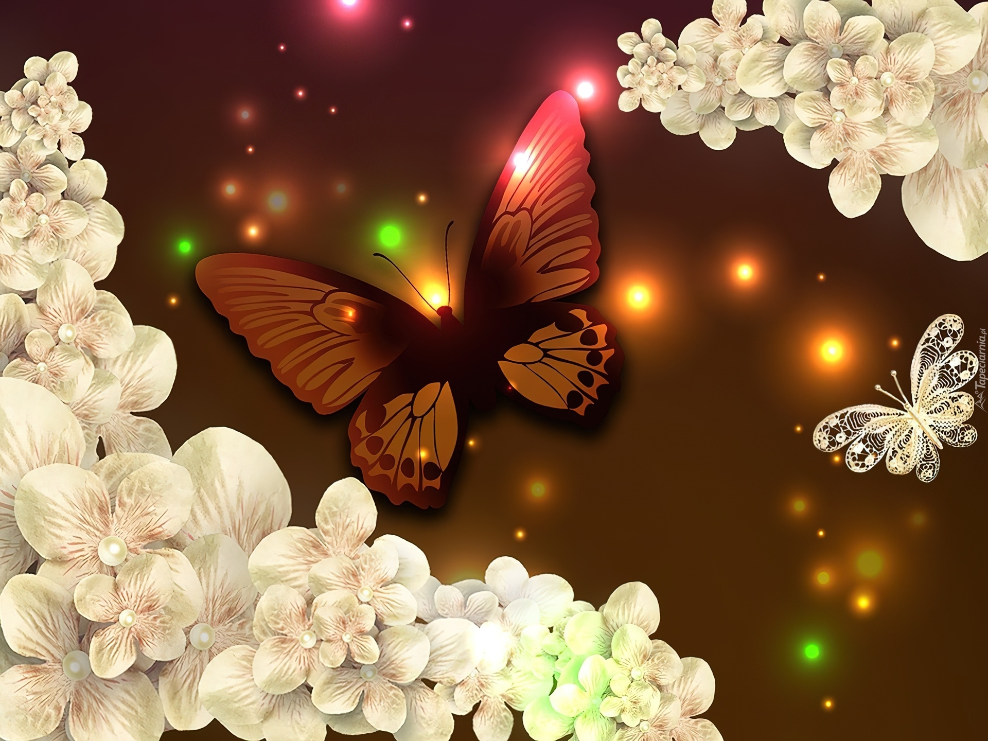 Edytor tapety: Motyl, Kwiaty, Światełka