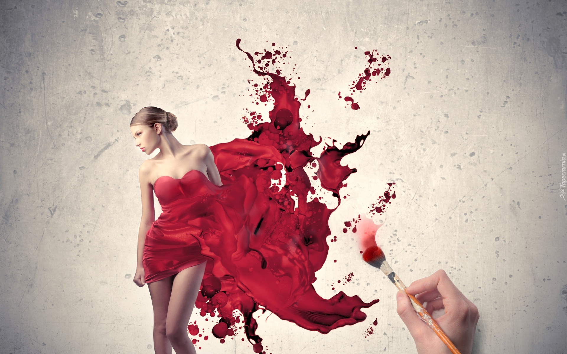 Edytor tapety: Kobieta, Sukienka, Farba, Pędzel