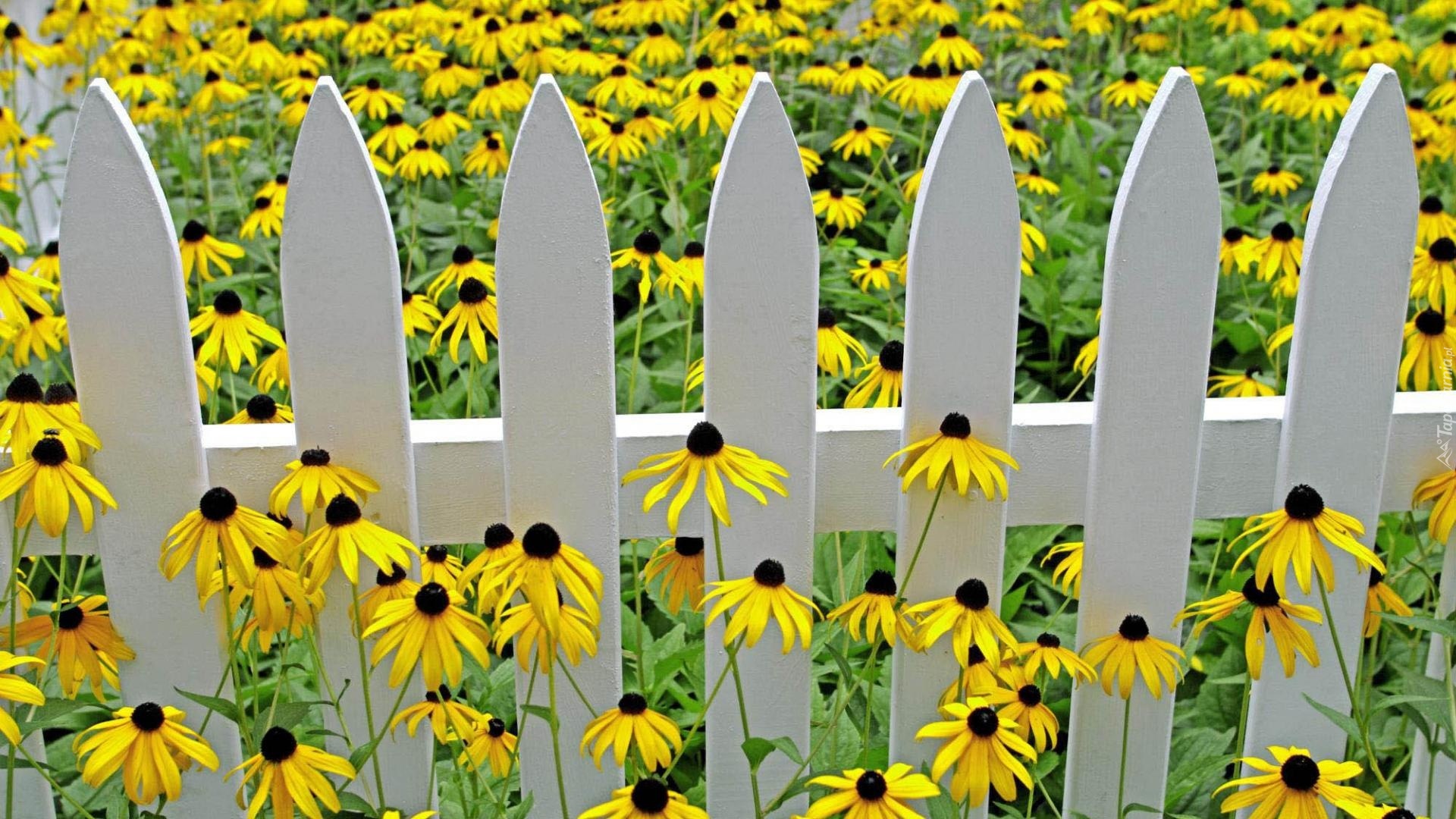 Edytor tapety: Łąka, Rudbekia, Płotek