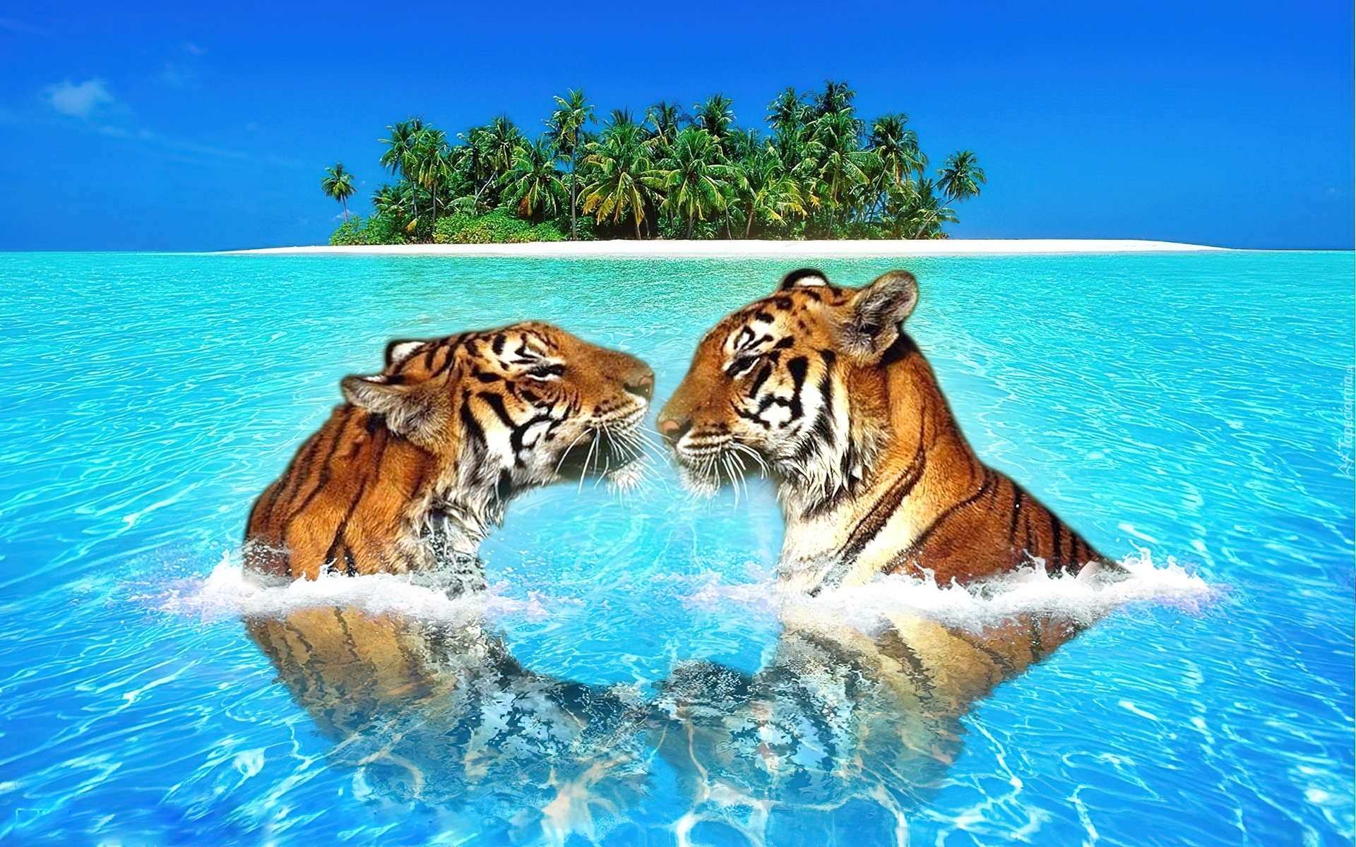 Edytor tapety: Tygrysy, Woda, Wyspa