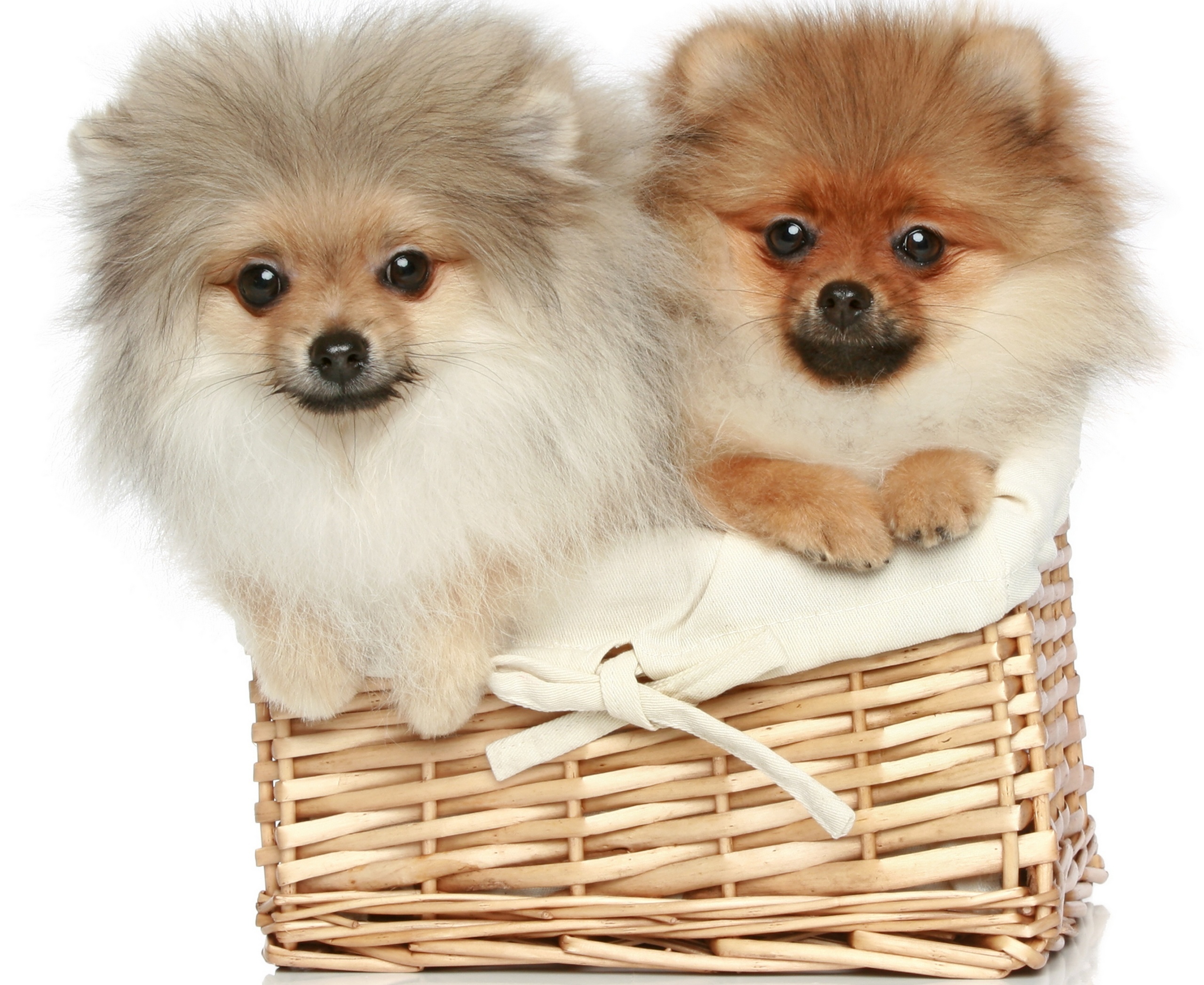 Edytor tapety: Psy, Koszyk, Szpice miniaturowe, Pomeraniany