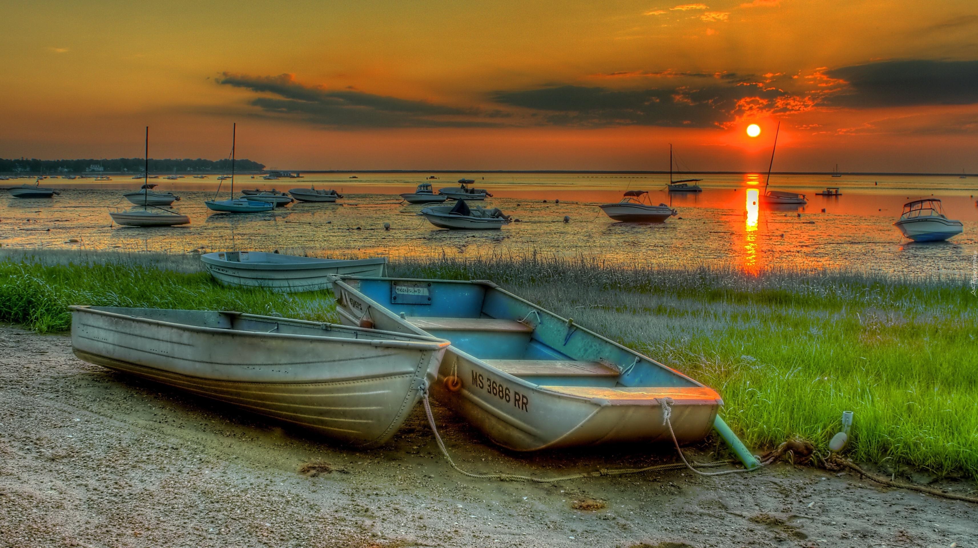 Edytor tapety: Zachód, Słońca, Morze, Łódki