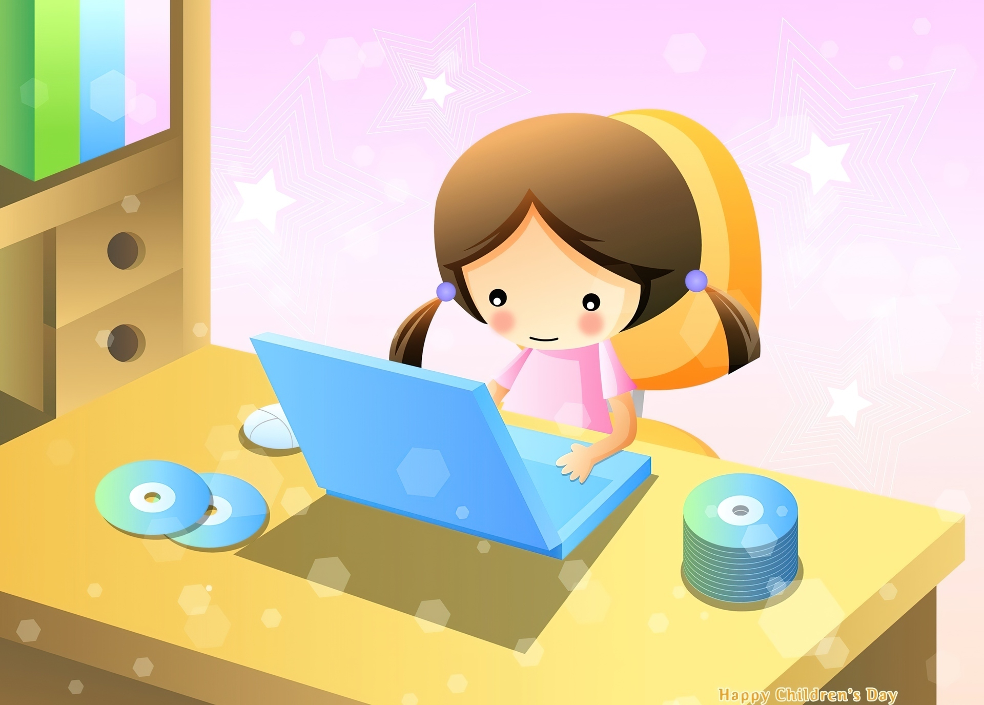 Edytor tapety: Dziecko, Komputer, Płyty CD