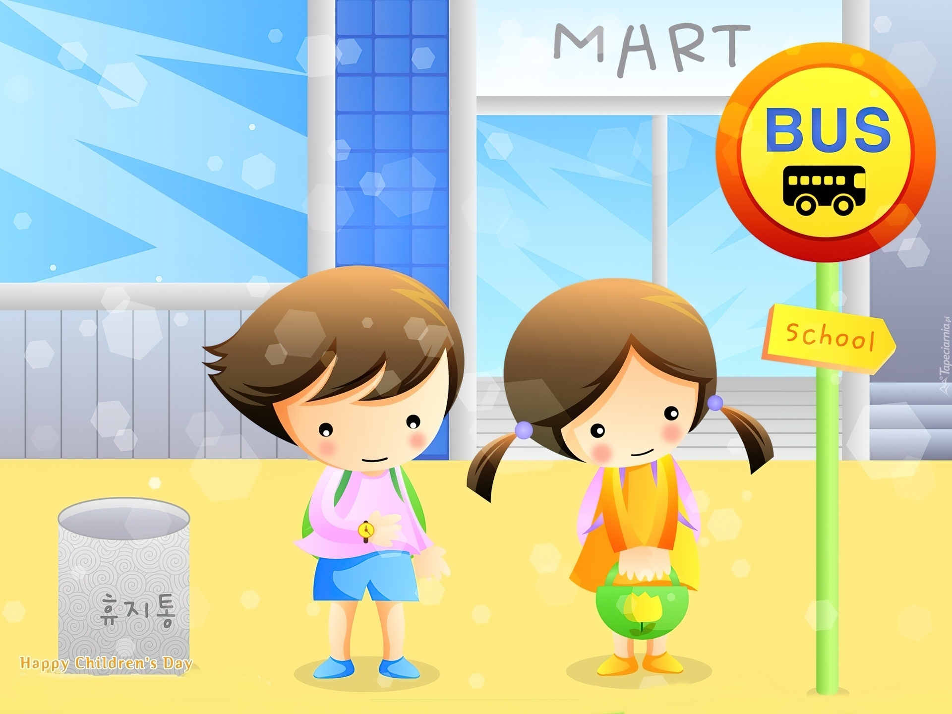 Edytor tapety: Dzieci, Przystanek, Autobusowy, Oczekiwanie