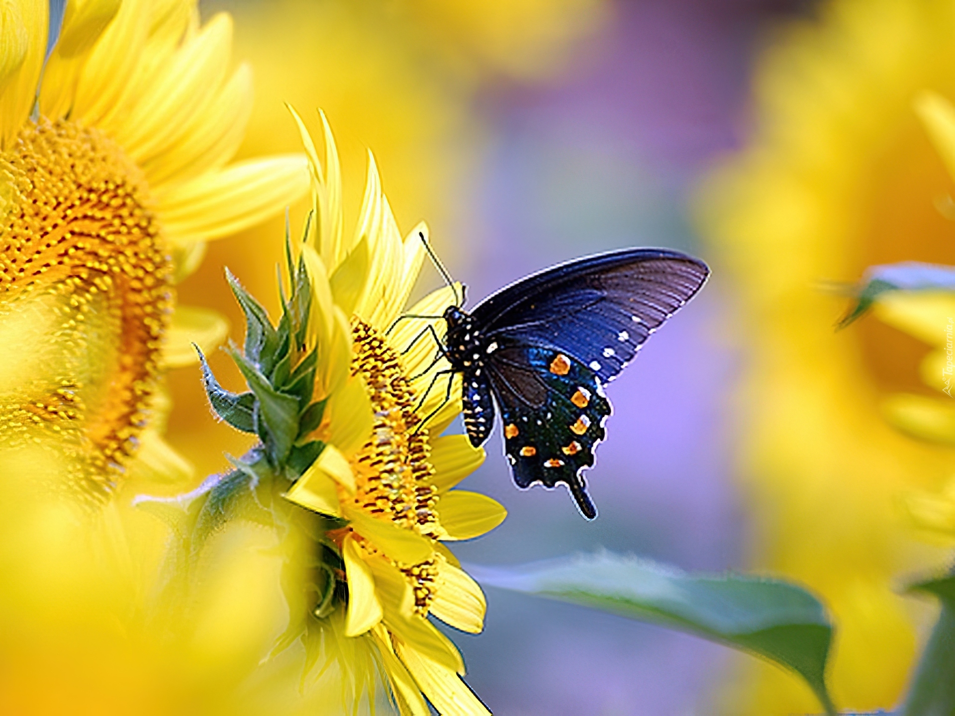 Edytor tapety: Słoneczniki, Ozdobne, Motyl