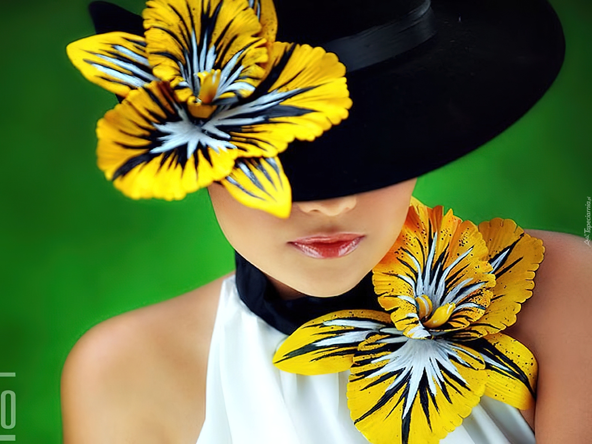 Edytor tapety: Kobieta, Kapelusz, Kwiaty