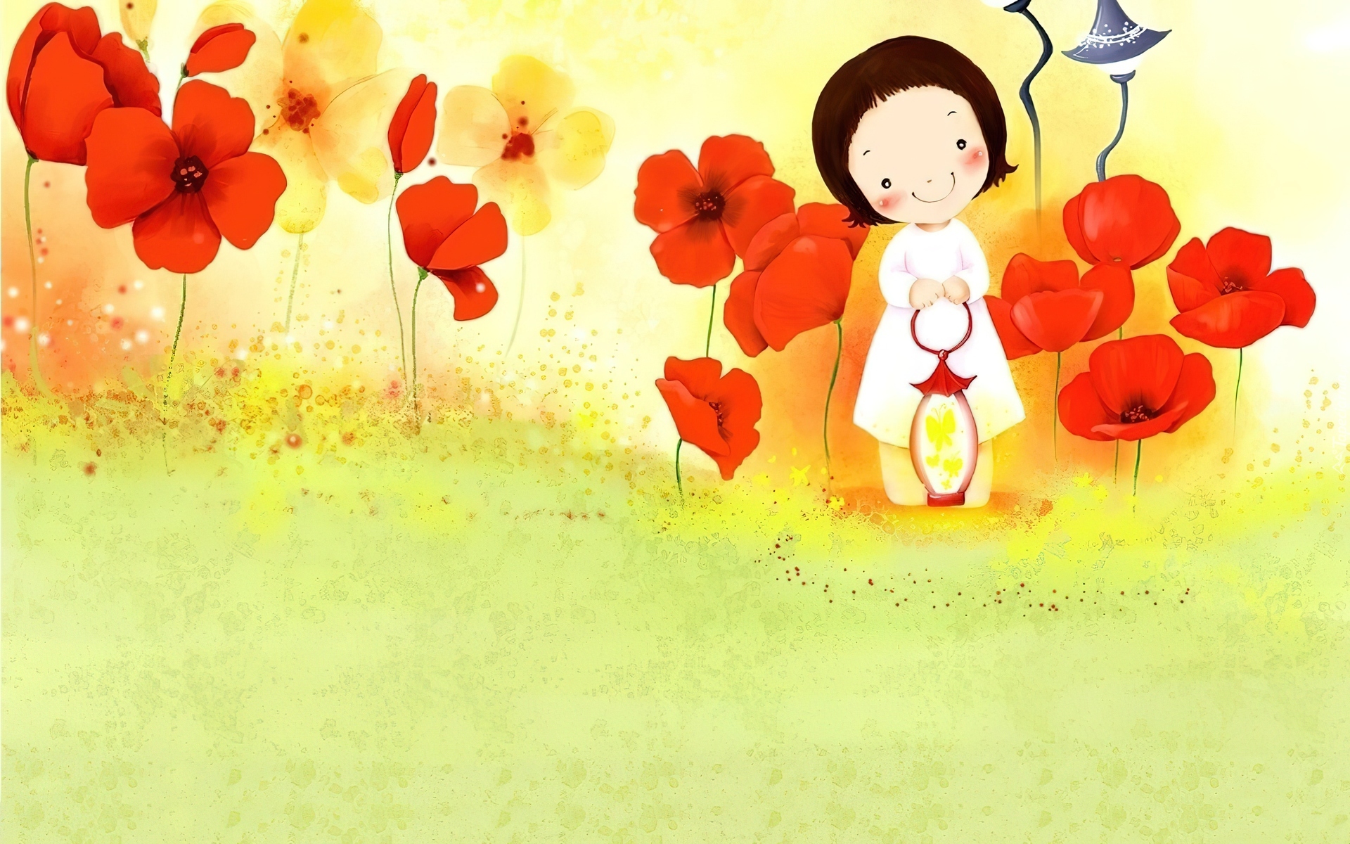 Edytor tapety: Dziecko, Lampa, Łąka, Maki