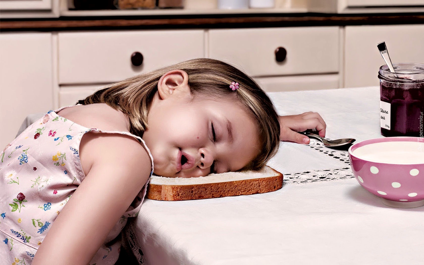Edytor tapety: Dziewczynka, Sen, Chleb