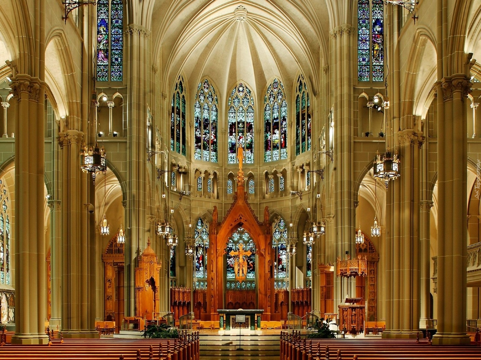 Edytor tapety: Kościół, Ołtarz, Witraże