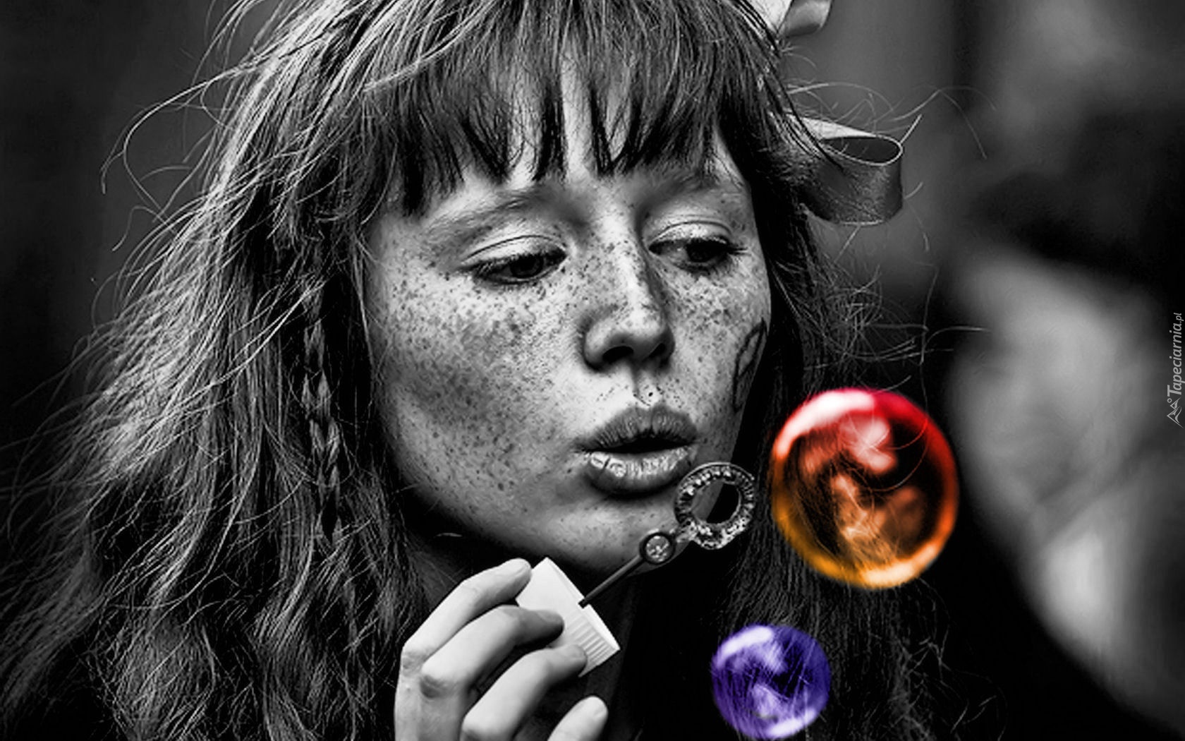 Edytor tapety: Kobieta, Kolorowe, Bańki