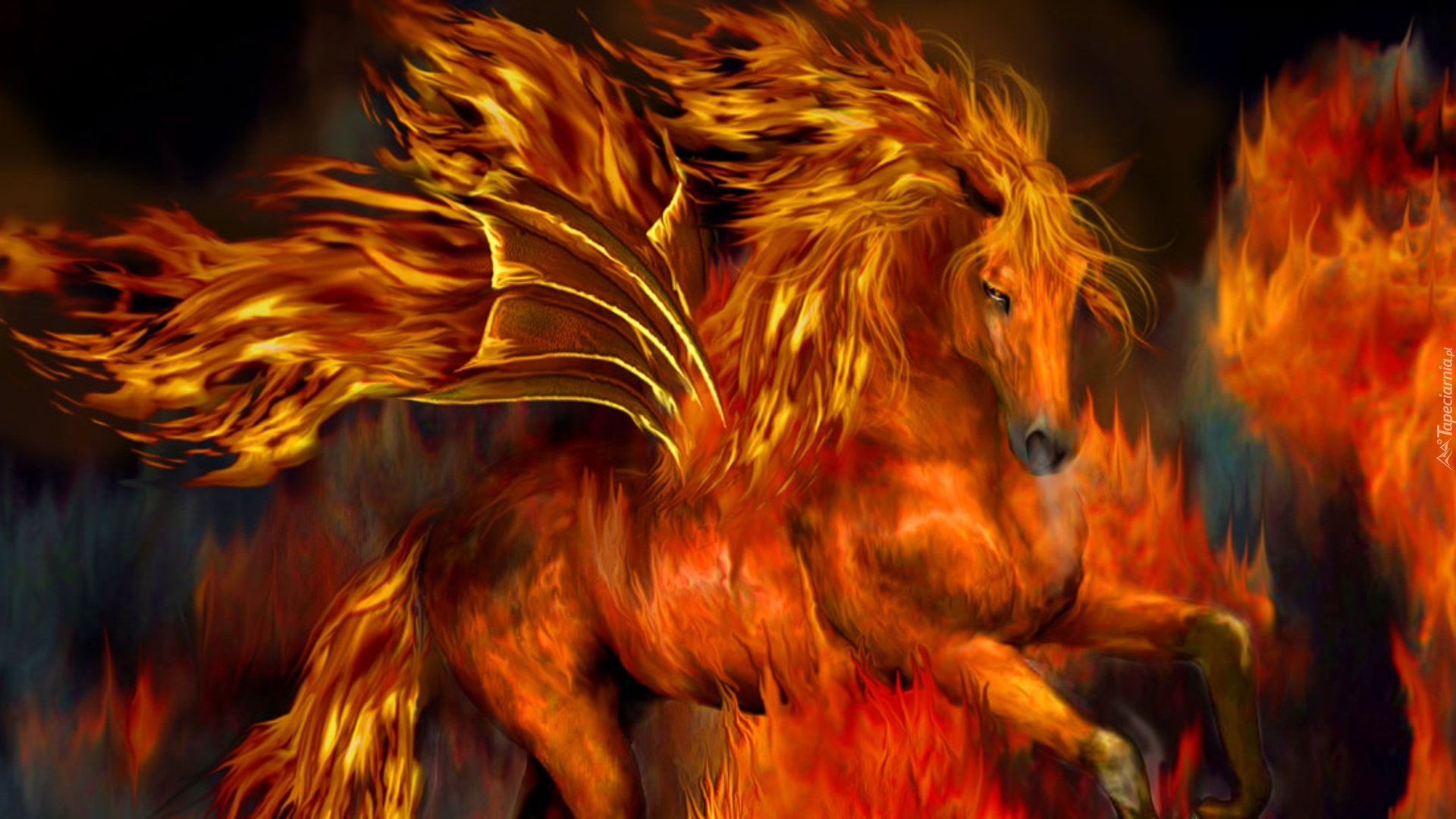 Edytor tapety: Koń, W, Ogniu