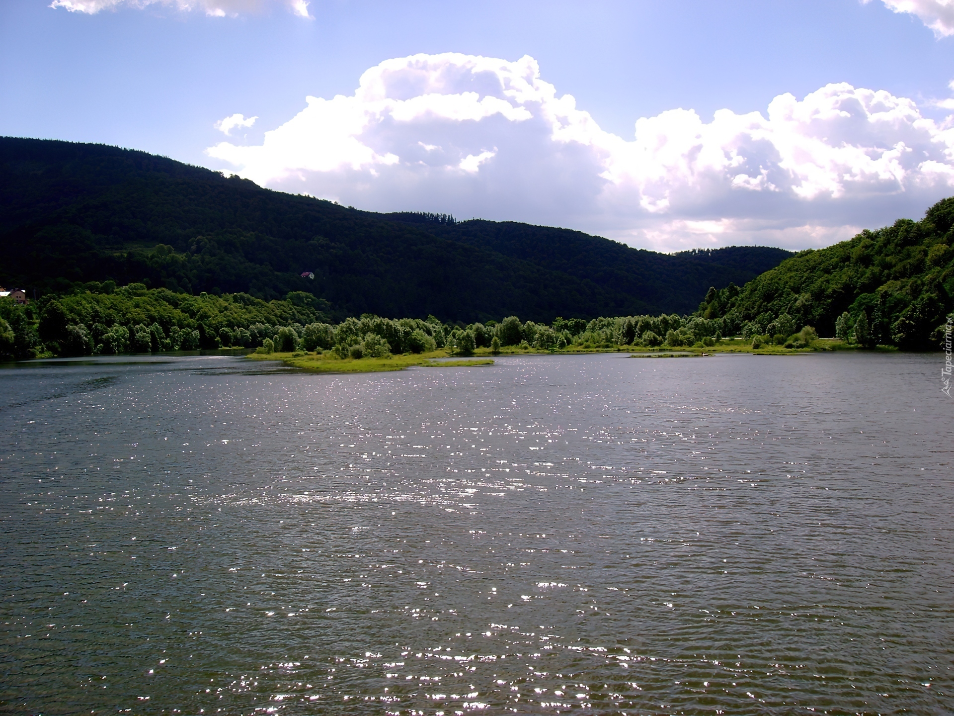 Edytor tapety: Góry, Jezioro, Drzewa, Niebo