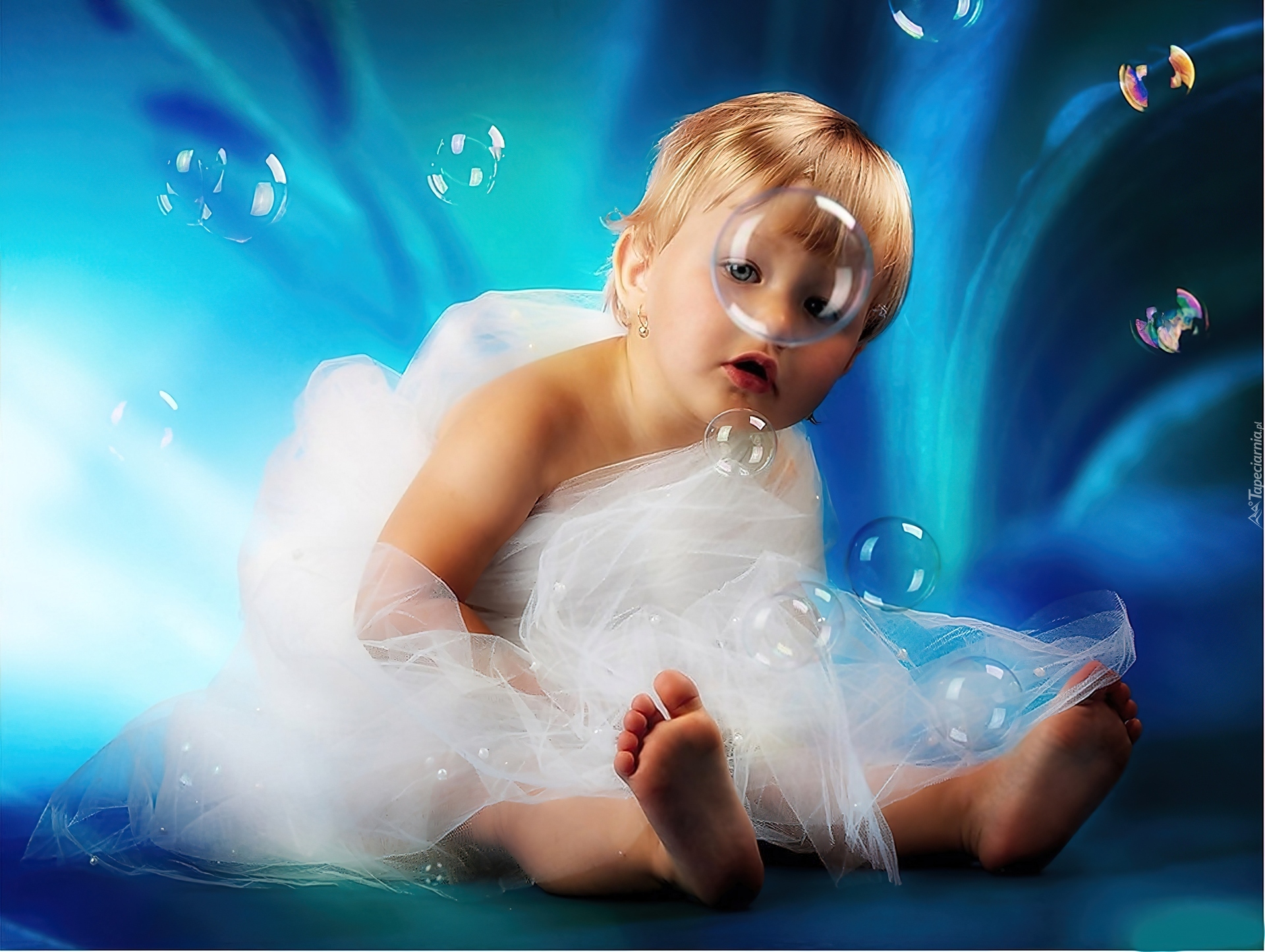 Edytor tapety: Mała, Dziewczynka, Bąbelki, Zabawa