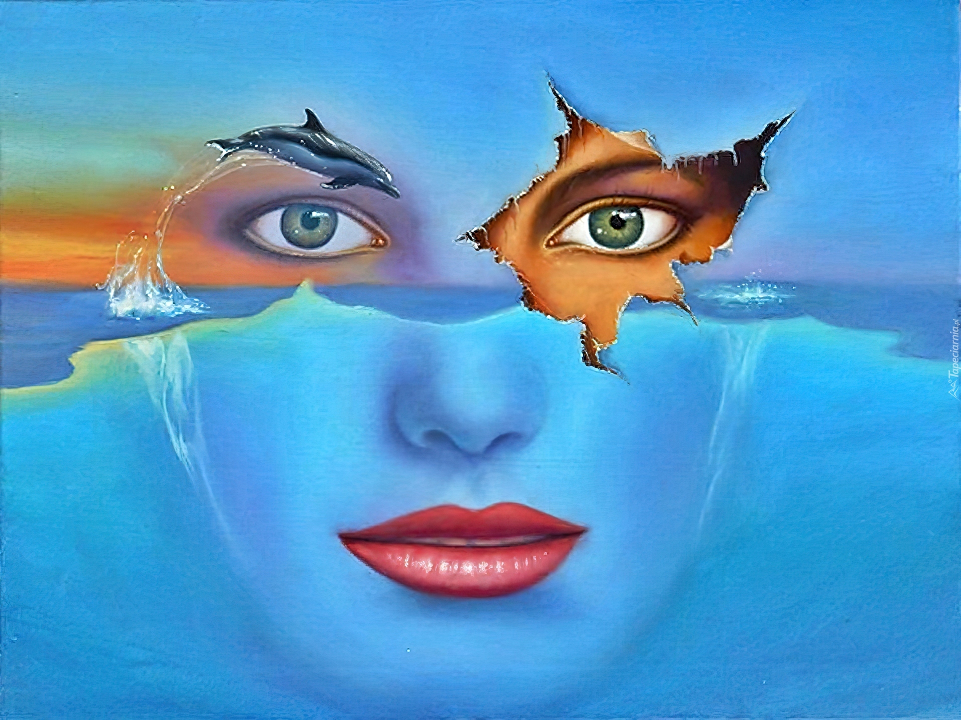 Edytor tapety: Twarz, Kobiety, Morze
