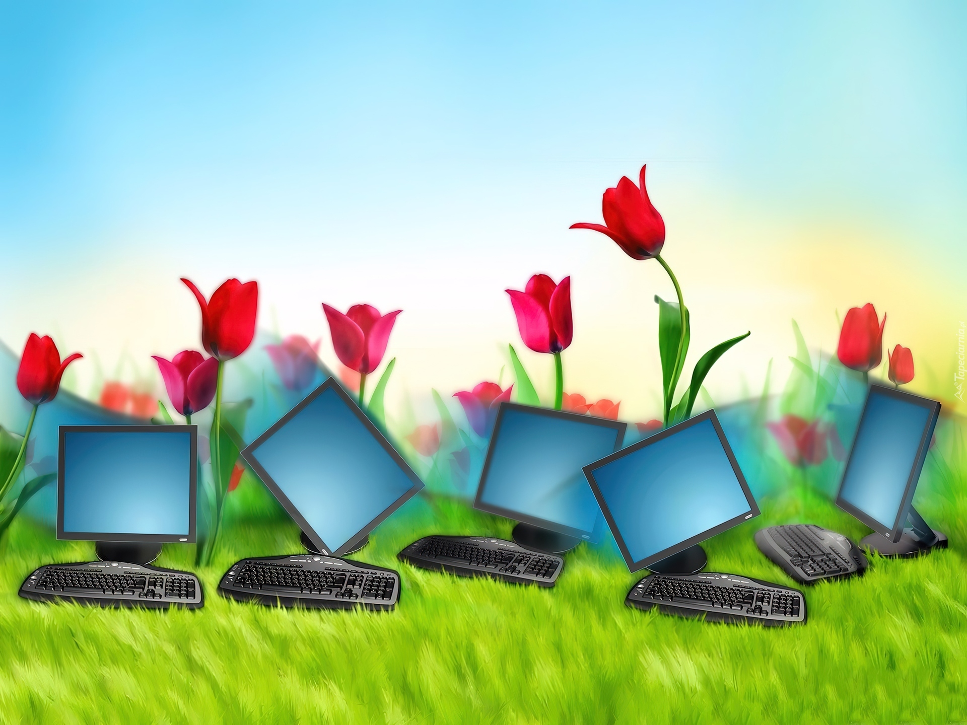 Edytor tapety: Monitory, Klawiatury, Tulipany