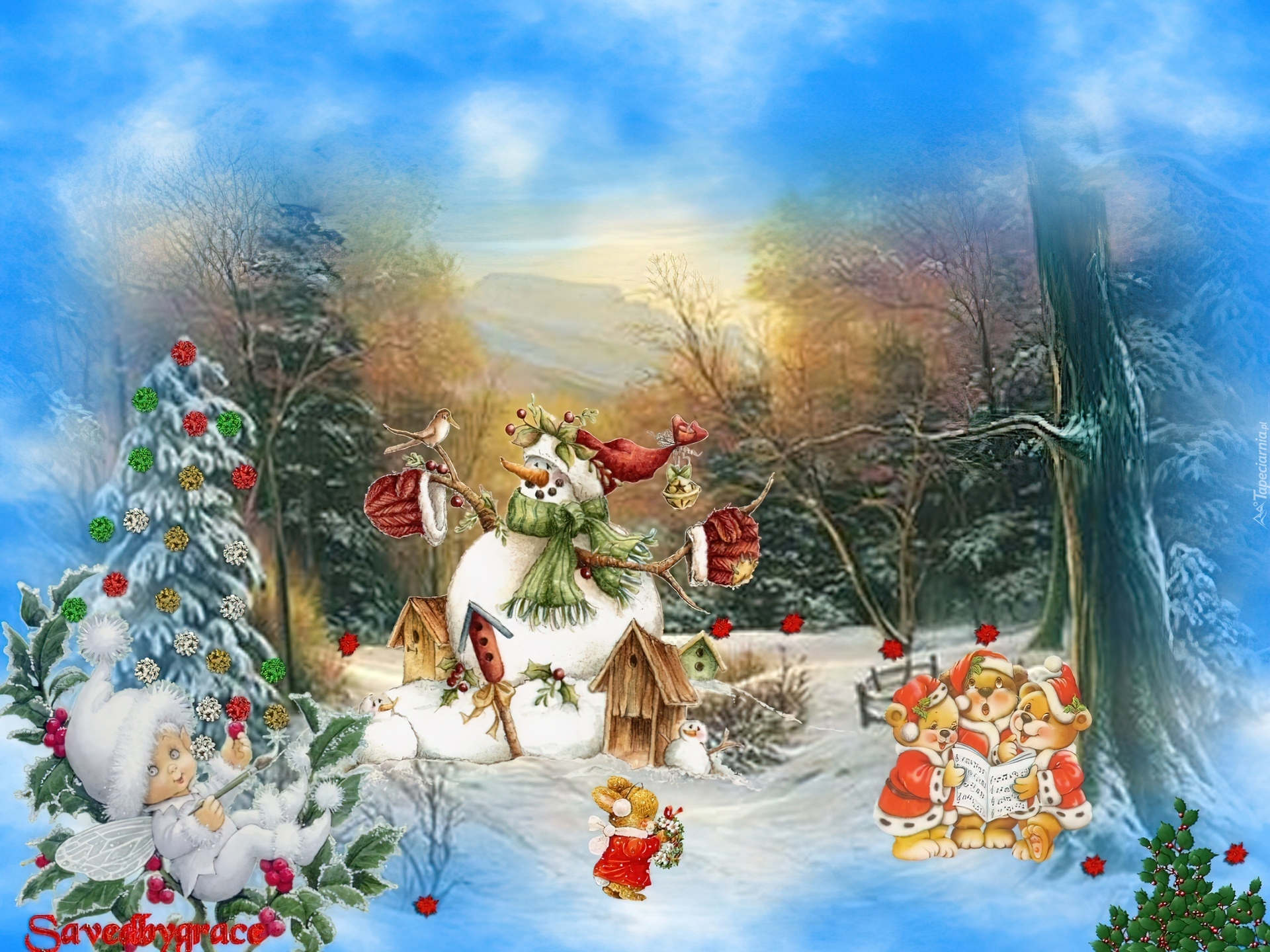 Edytor tapety: Bałwanki, Misie, Las