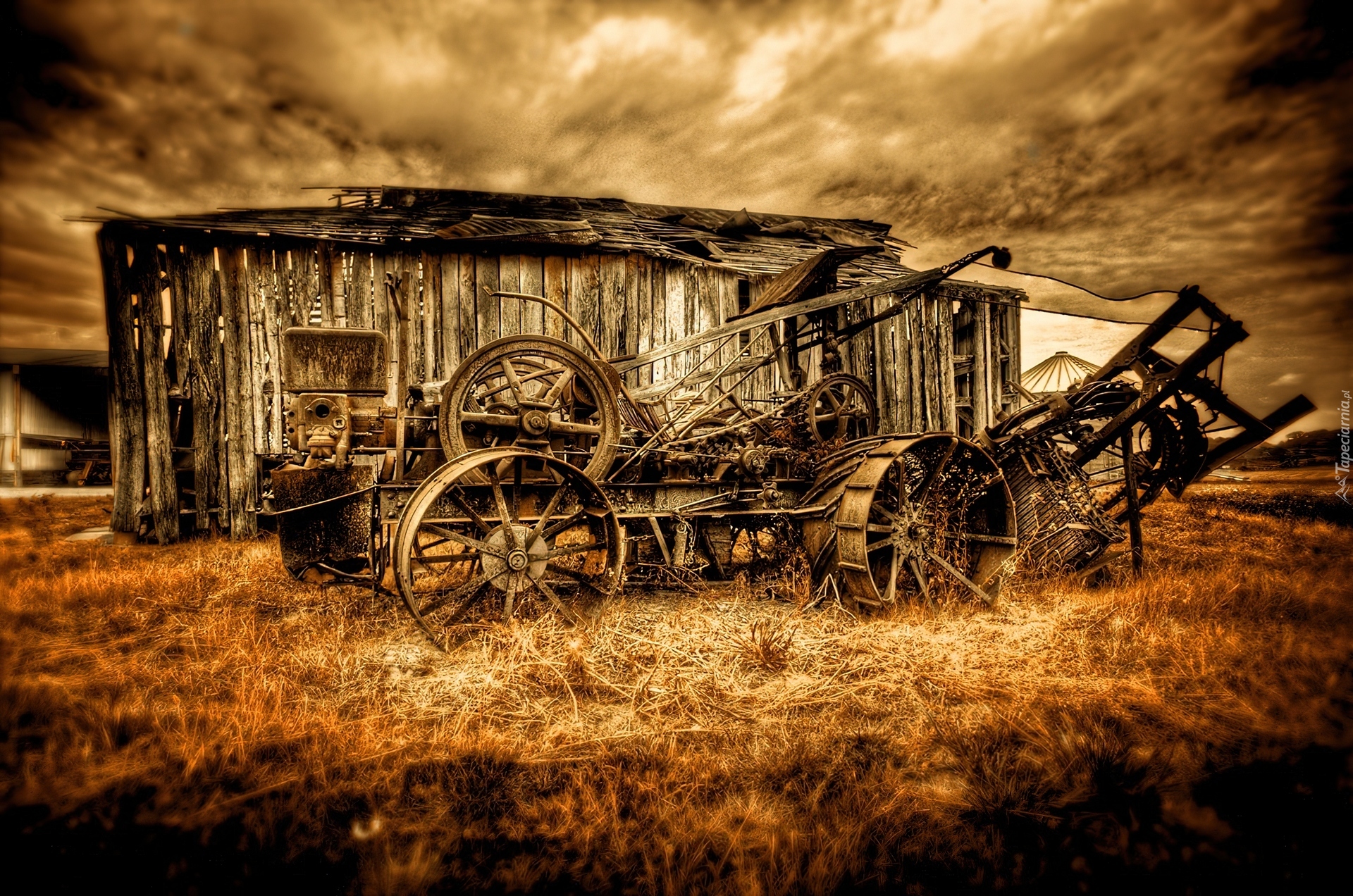 Edytor tapety: Maszyny, Rolnicze, Chmury, Szopa