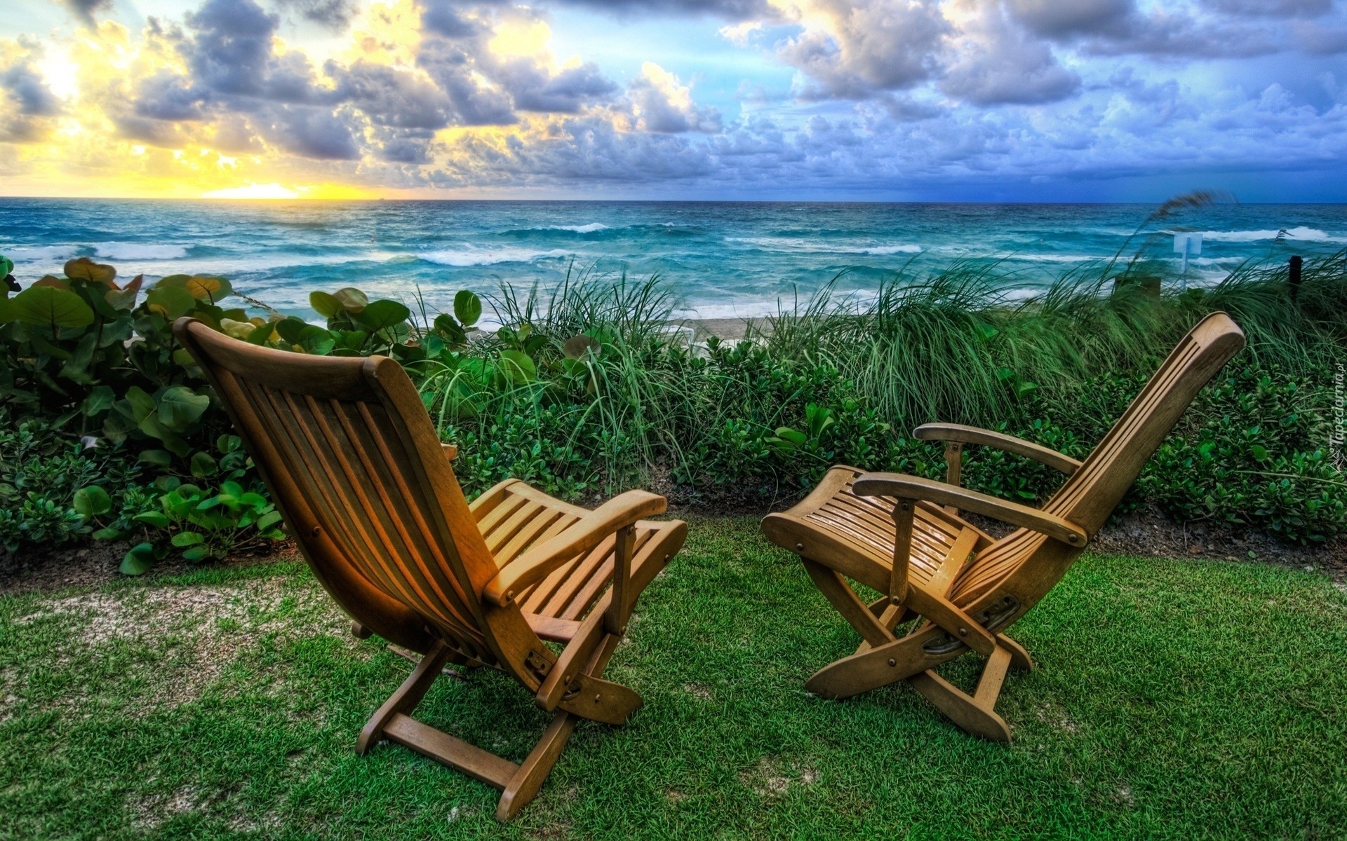Edytor tapety: Morze, Plaża, Krzesła