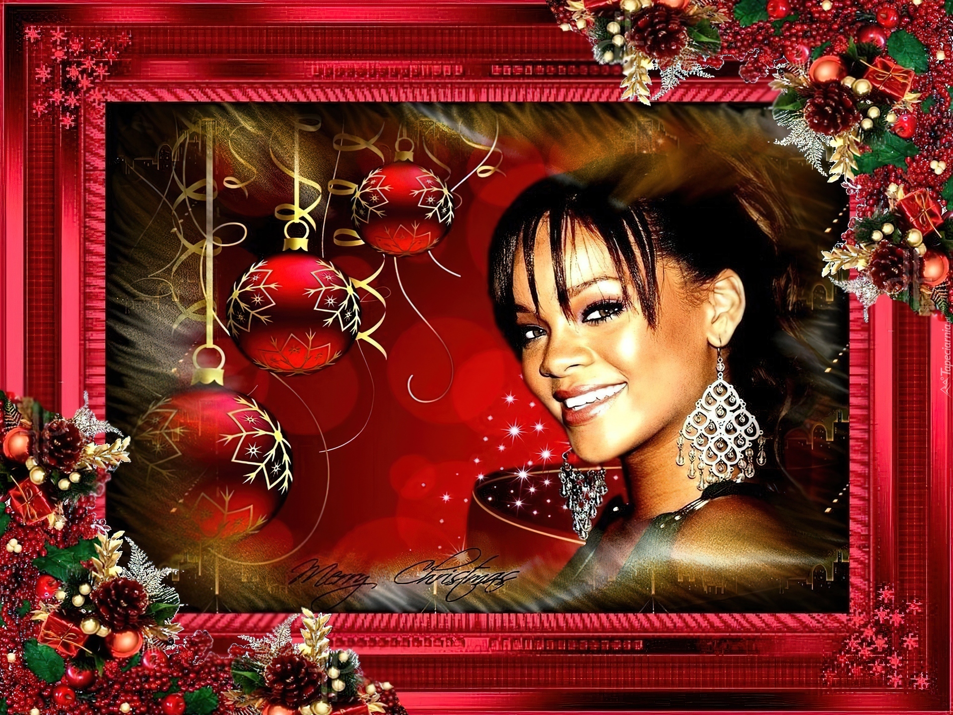 Edytor tapety: Dziewczyna, Bombki, Świąteczna, Pocztówka
