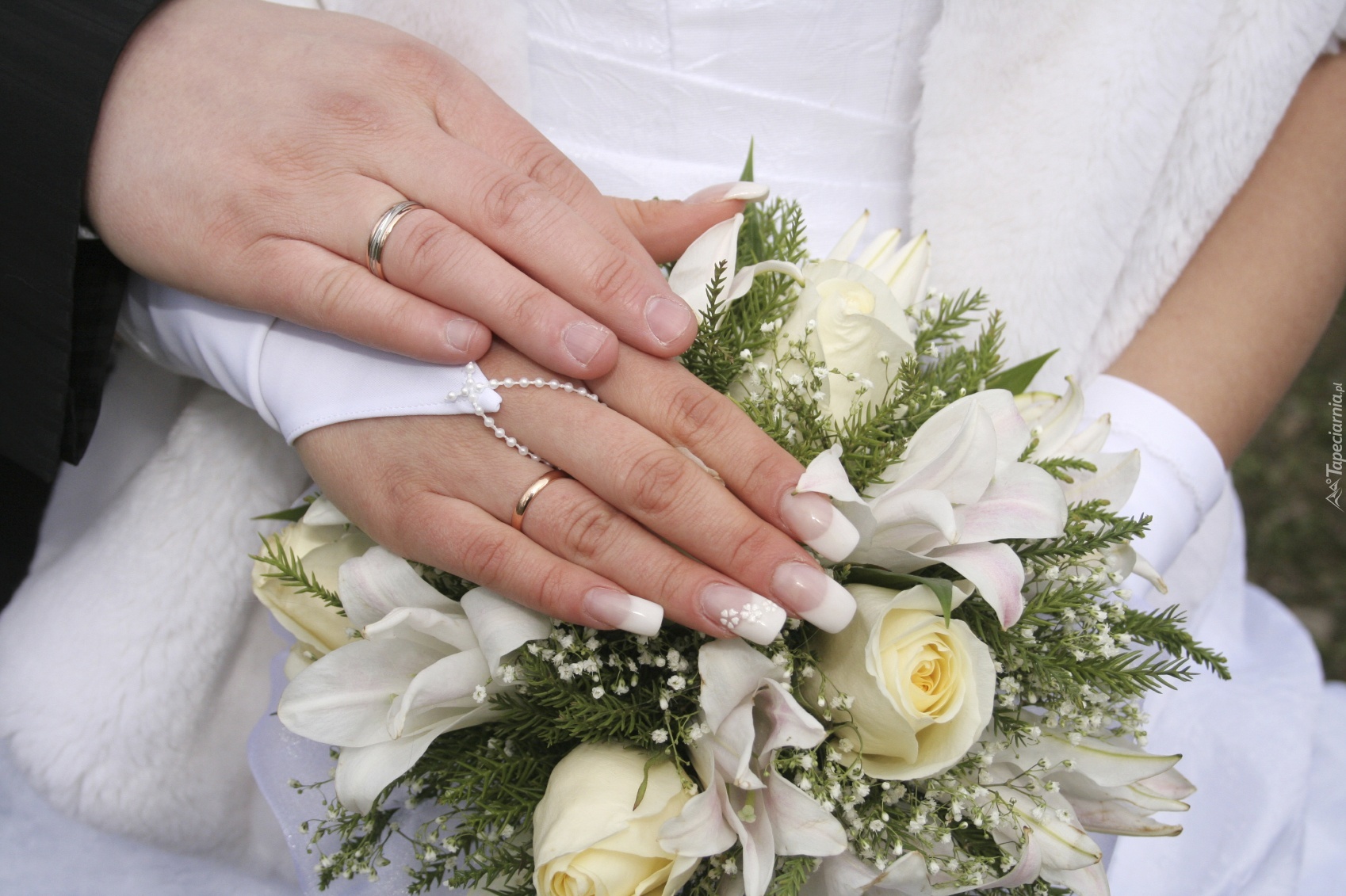 Edytor tapety: Dwie, Dłonie, Obrączki, Bukiet