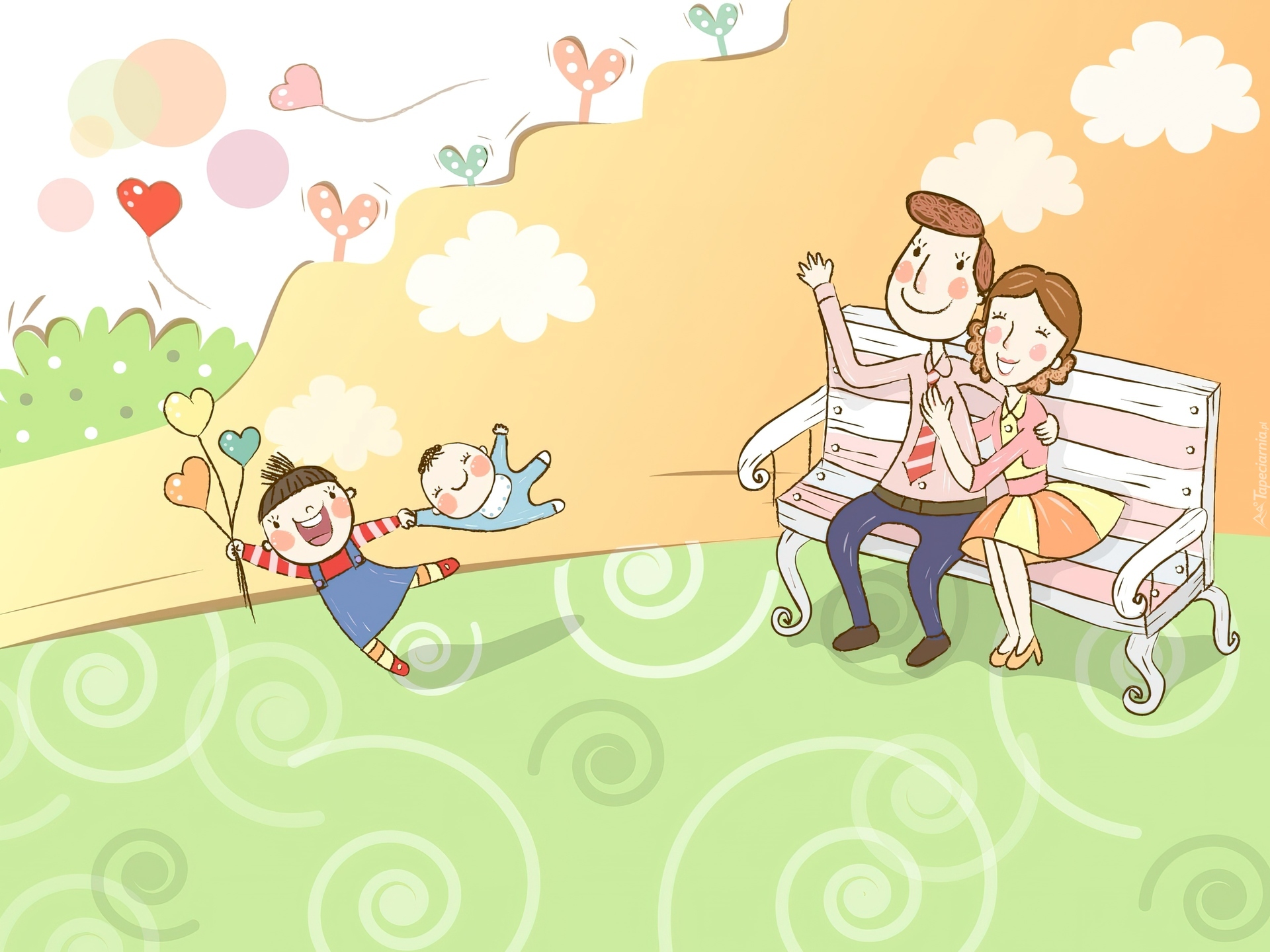 Edytor tapety: Szczęśliwa, Rodzinka, Ławeczka