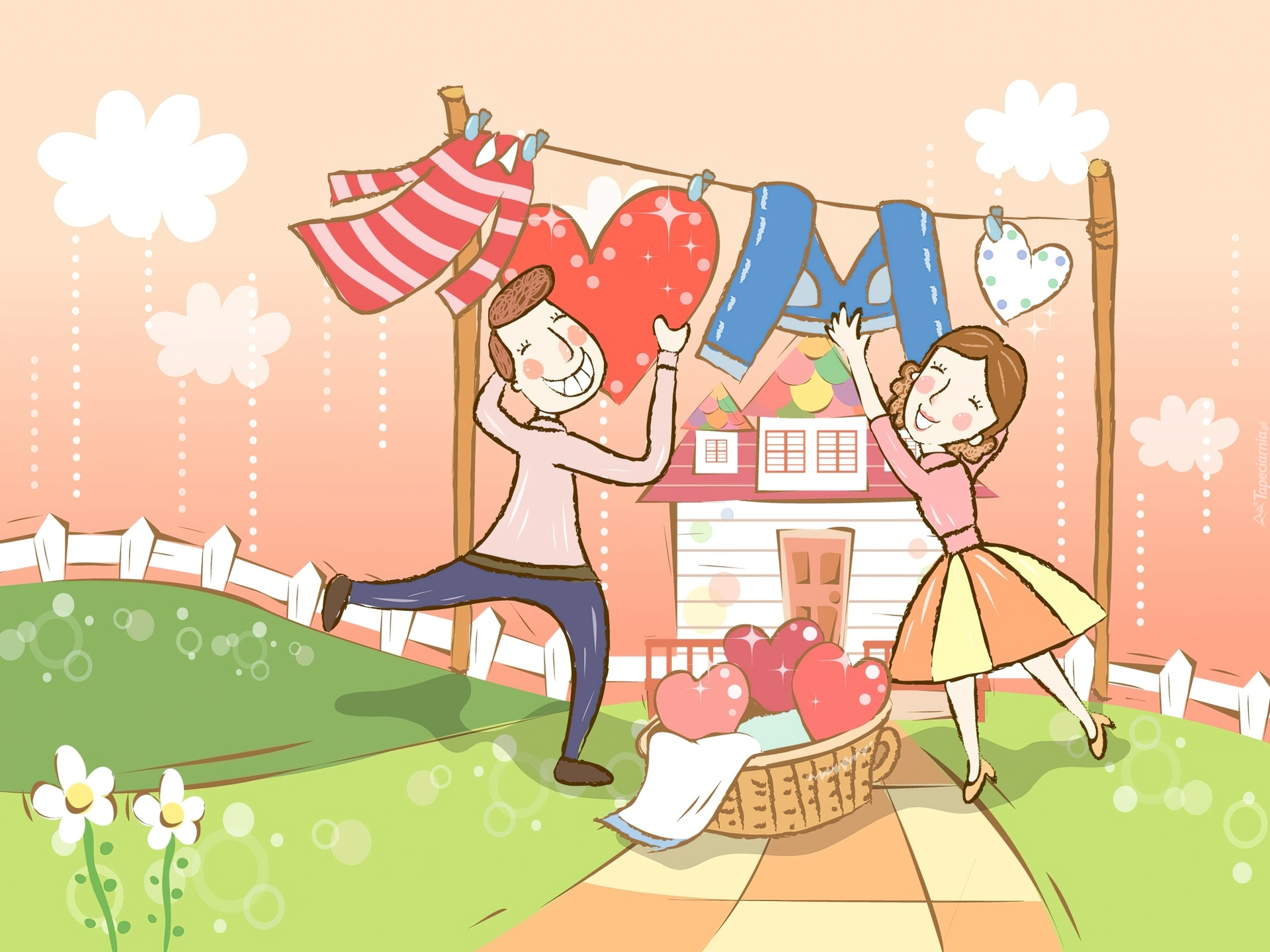 Edytor tapety: Szczęśliwa, Para, Pranie, Serca