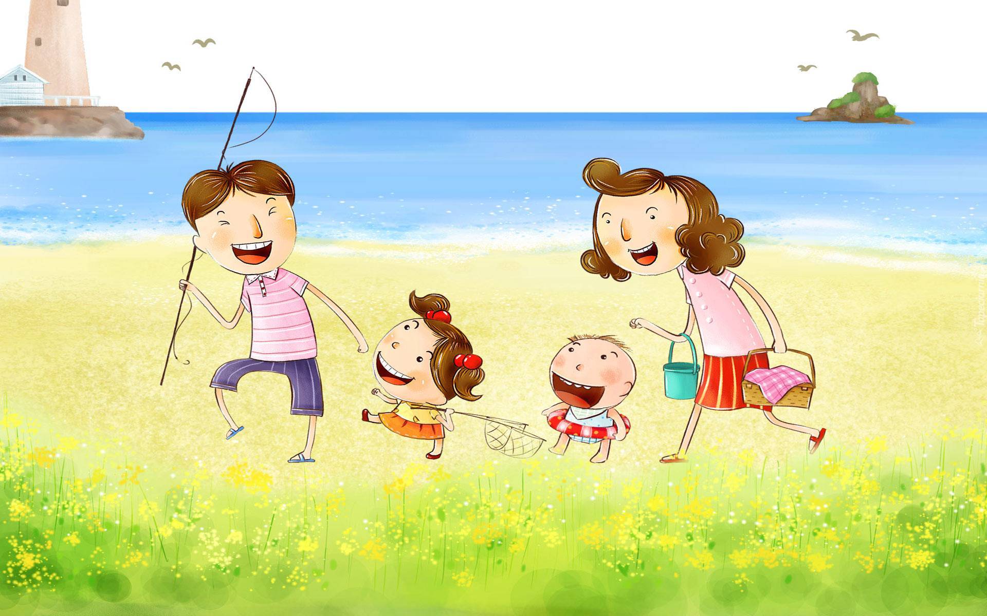 Edytor tapety: Szczęśliwa, Rodzinka, Plaża, Morze