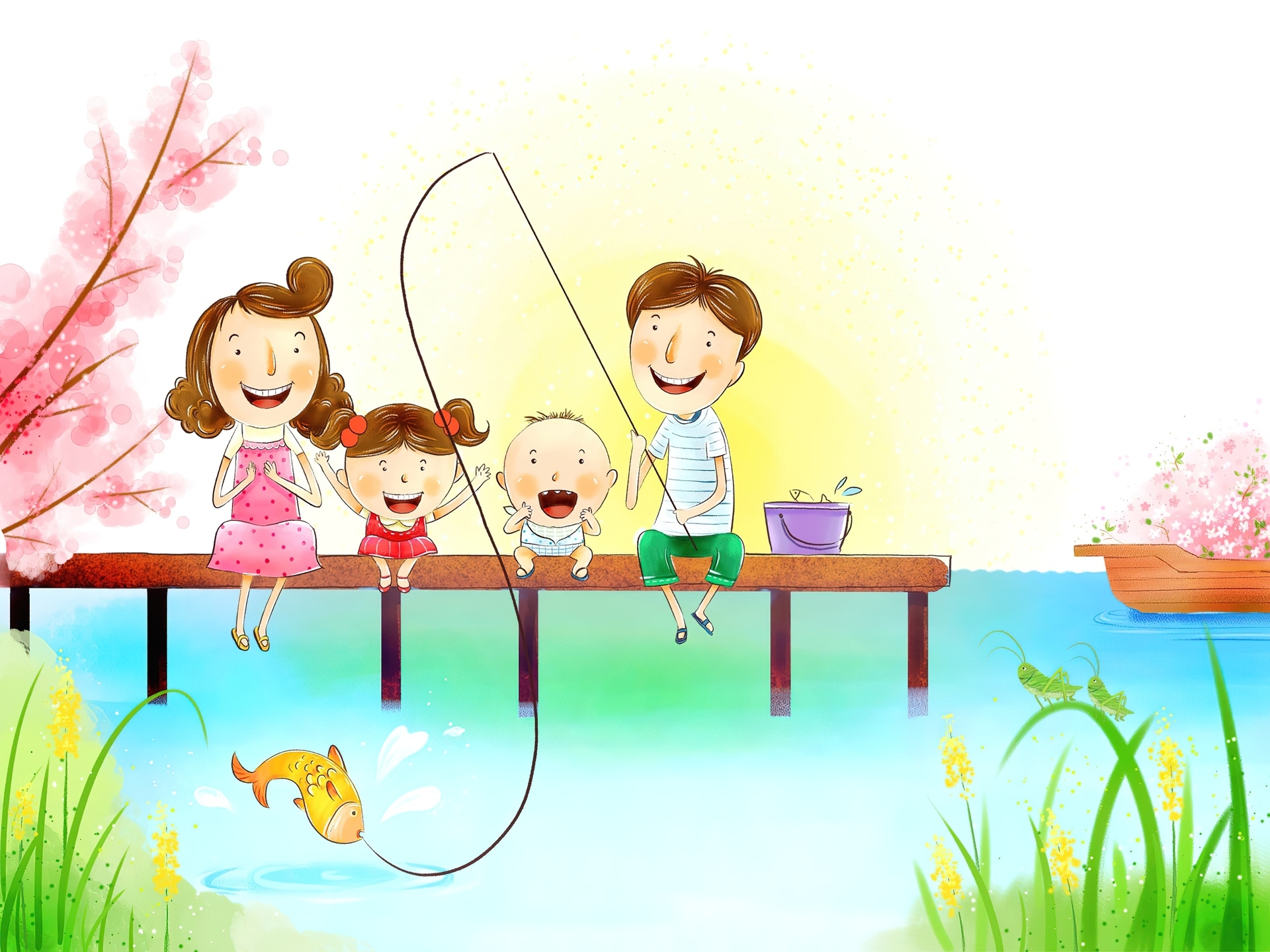 Edytor tapety: Rodzinka, Jezioro, Wędkowanie