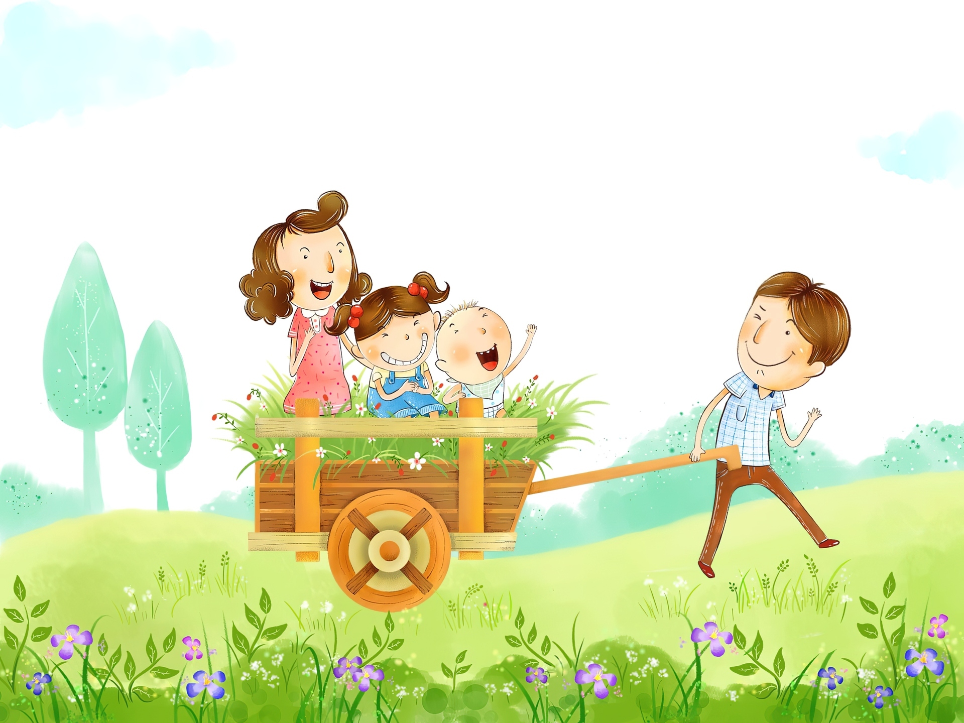 Edytor tapety: Szczęśliwa, Rodzinka, Wózek