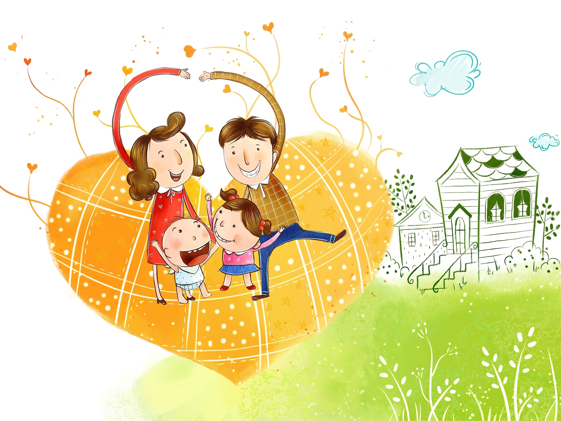 Edytor tapety: Szczęśliwa, Rodzinka, Serce, Dom