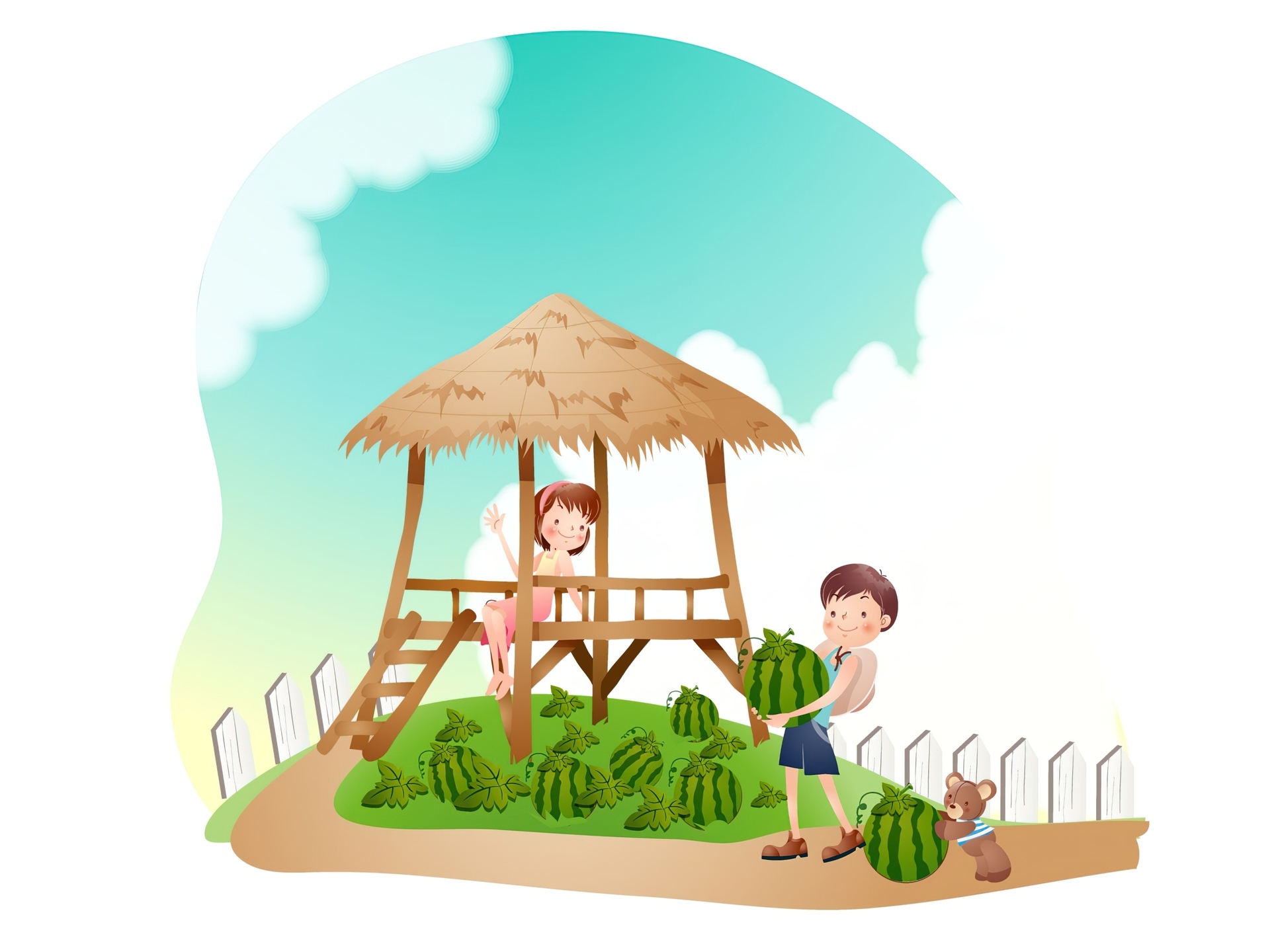 Edytor tapety: Dzieci, Plantacja, Arbuzy