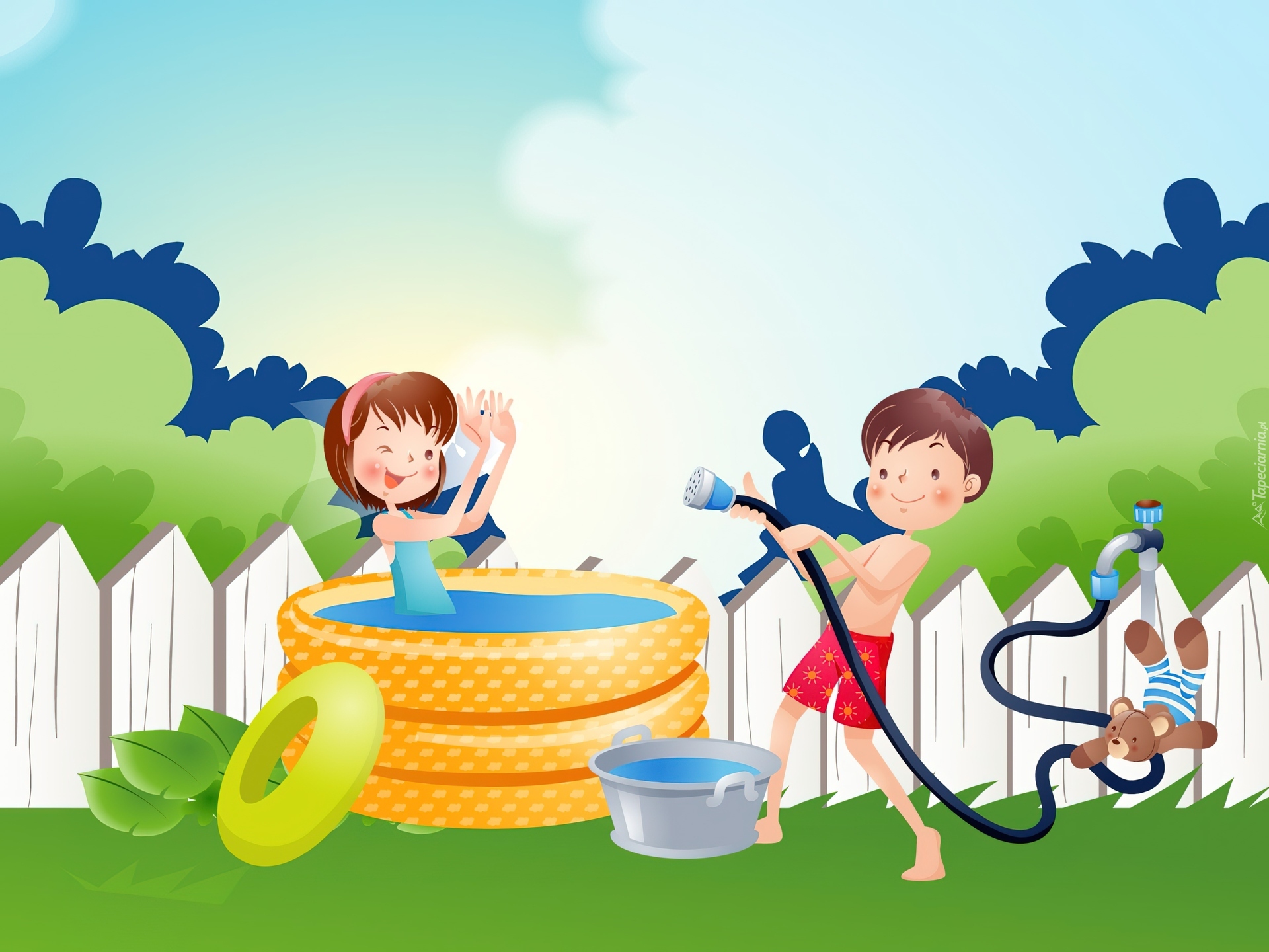 Edytor tapety: Dzieci, Basen, Zabawy, Wodą
