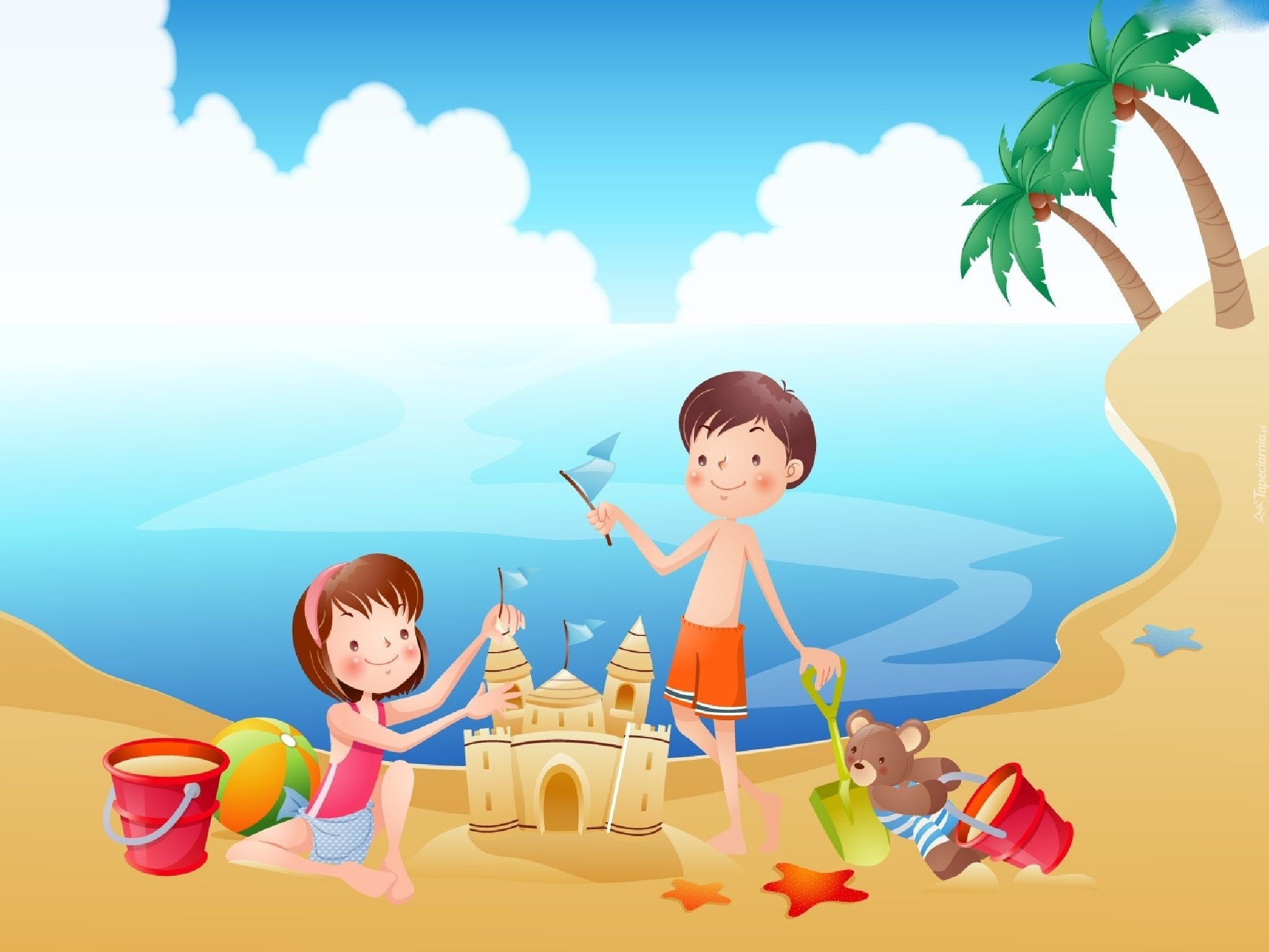 Edytor tapety: Dzieci, Morze, Plaża, Zabawa