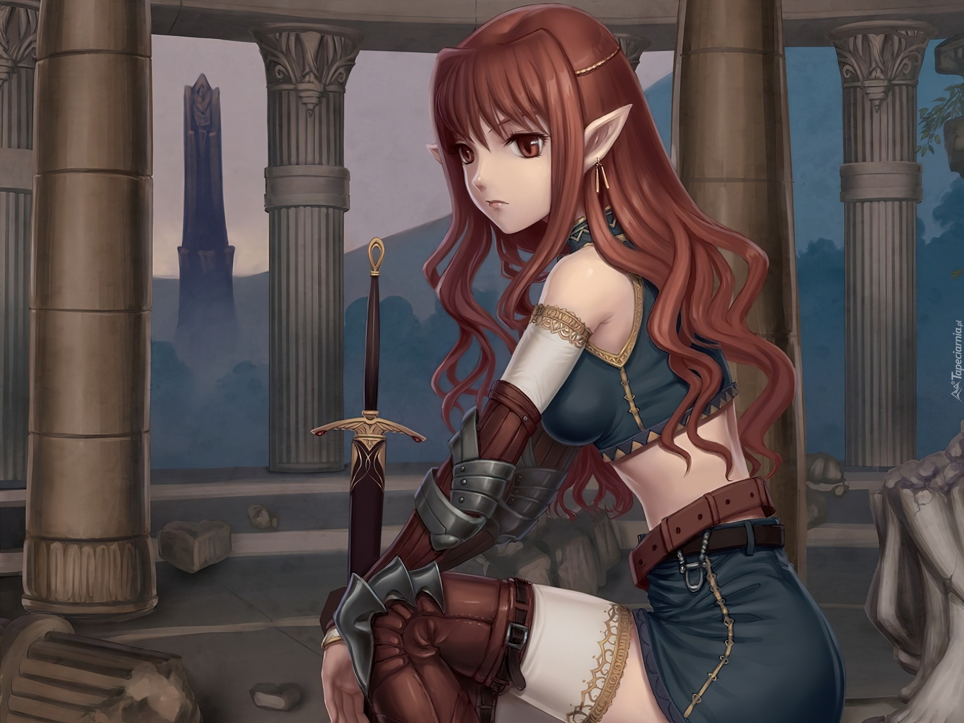 Edytor tapety: Dziewczyna, Elf, Miecz, Filary