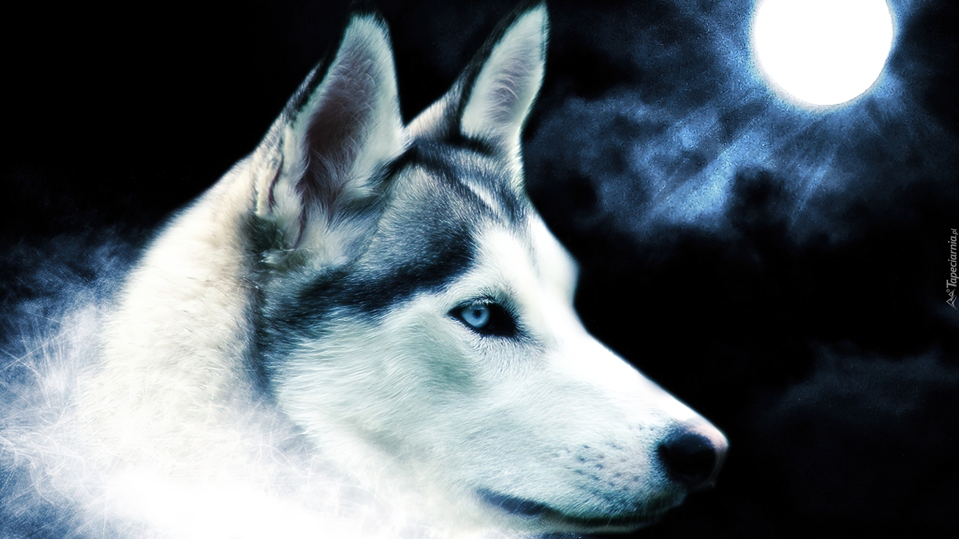 Edytor tapety: Księżyc, Siberian Husky