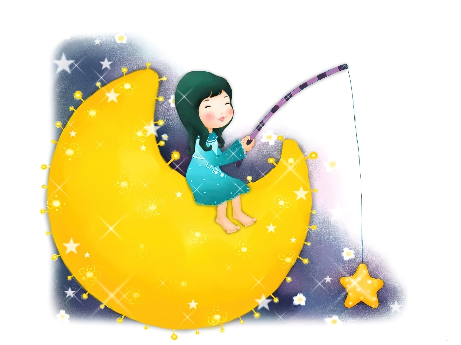 Edytor tapety: Księżyc, Łowy, Dziewczynka, Gwiazdy