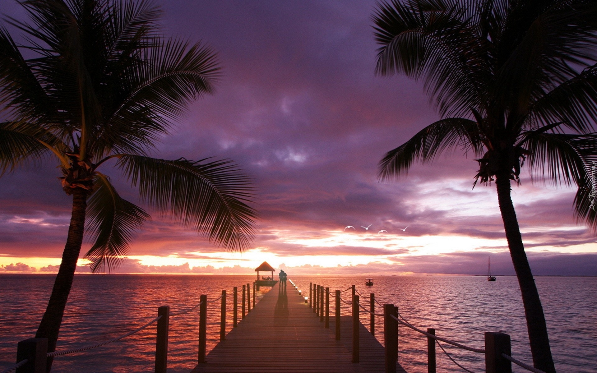 Edytor tapety: Morze, Zachód, Słońca, Palmy, Molo