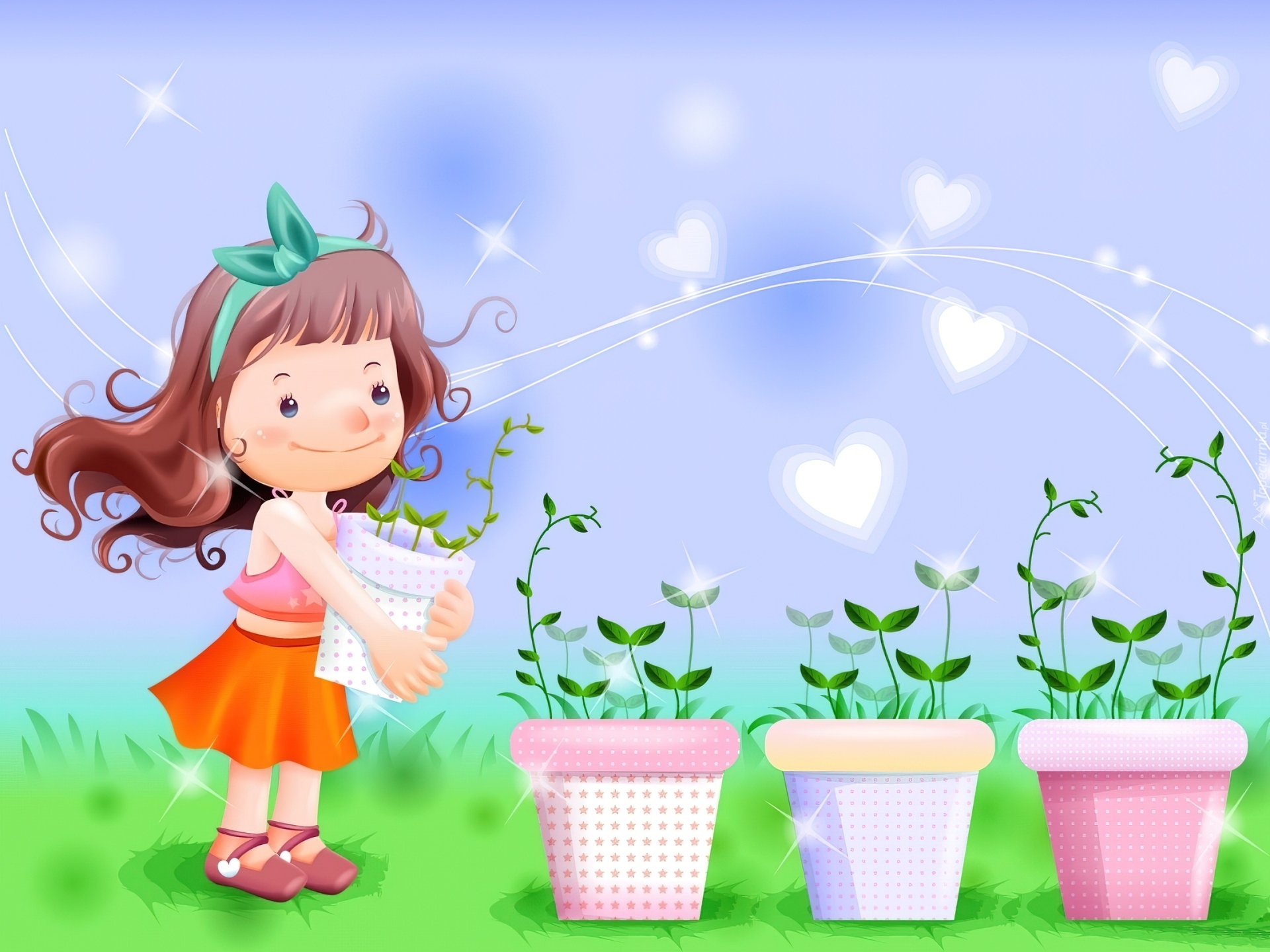 Edytor tapety: Dziecko, Doniczki, Roślinki