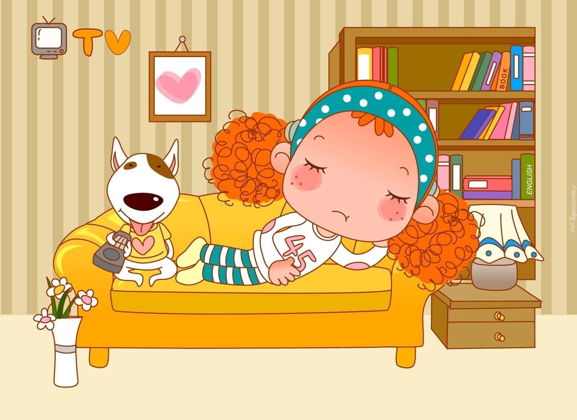 Edytor tapety: Dziecko, Pies, Kanapa, Odpoczynek